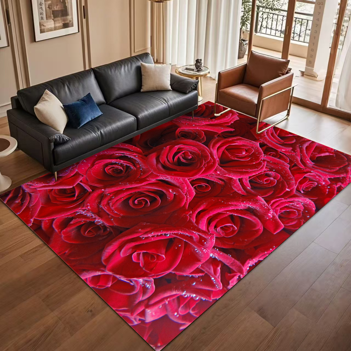 北欧花卉客厅地毯耐脏易打理天鹅绒地毯家用大面积全铺沙发茶几毯