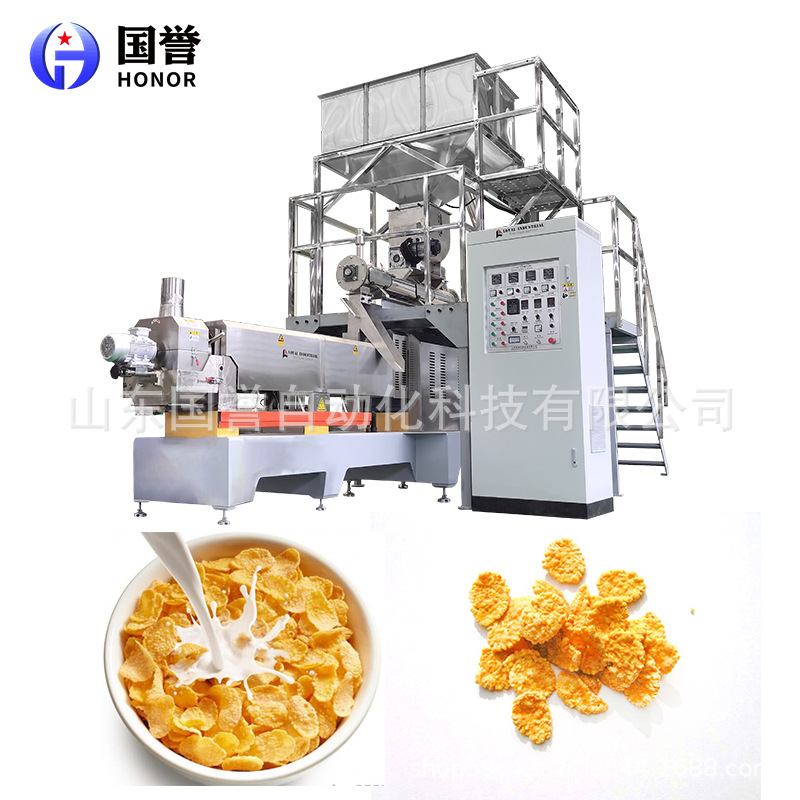 早餐谷物玉米片生产线 双螺杆挤压膨化机组合 休闲膨化食品生产线
