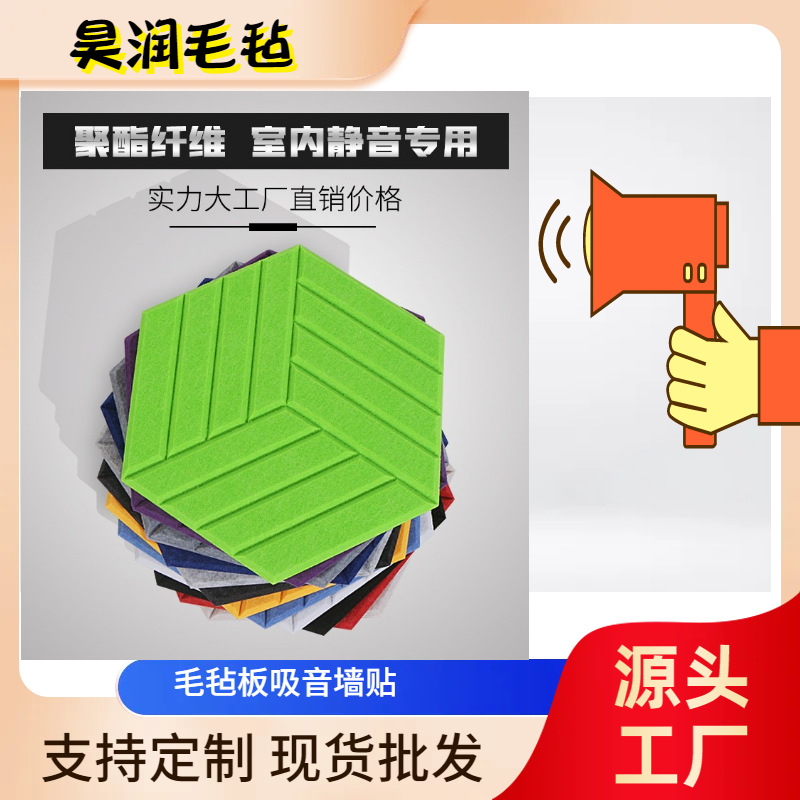 聚酯纤维吸音板墙贴六边背景墙录音棚琴房学校KTV毛毡板装饰材料