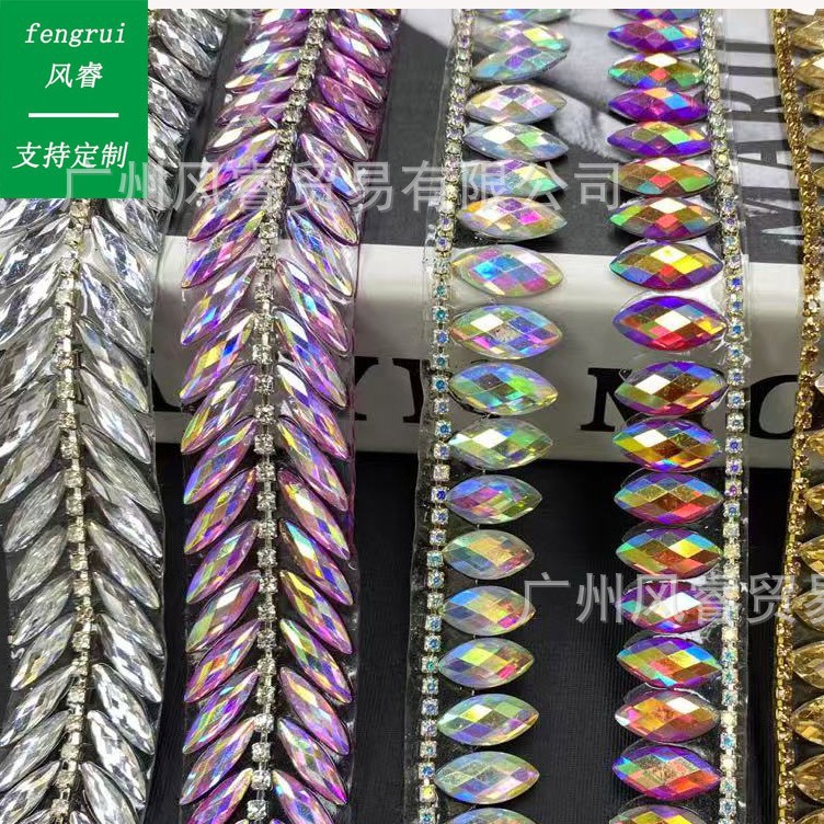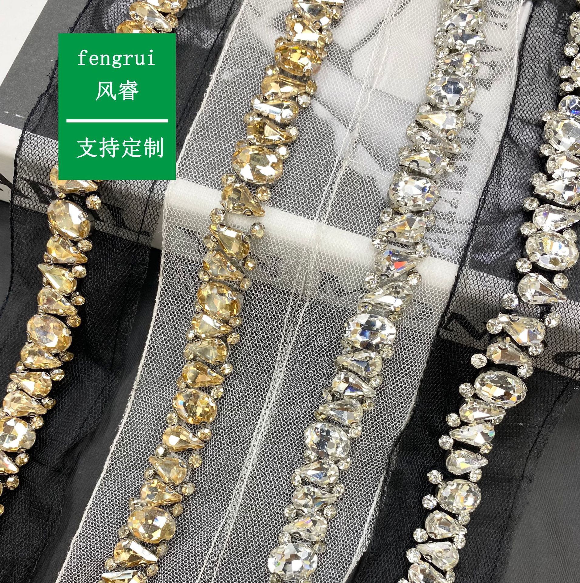 跨境麦穗水晶钻条花边 民族风服饰腰部DIY领口装饰配件水链条批发