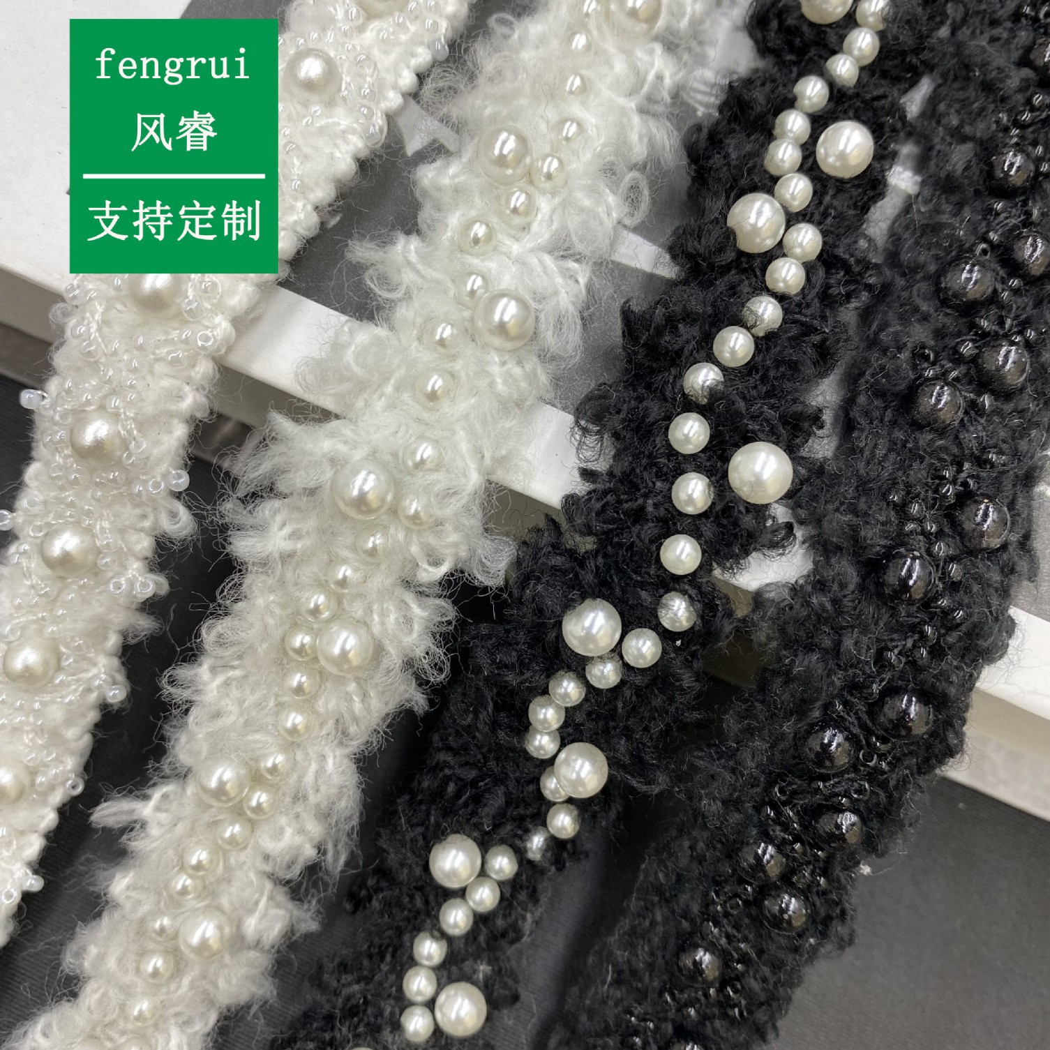 厂家现货手工钉珠花边 小香风水钻珍珠花边 服装外套装饰花边辅料