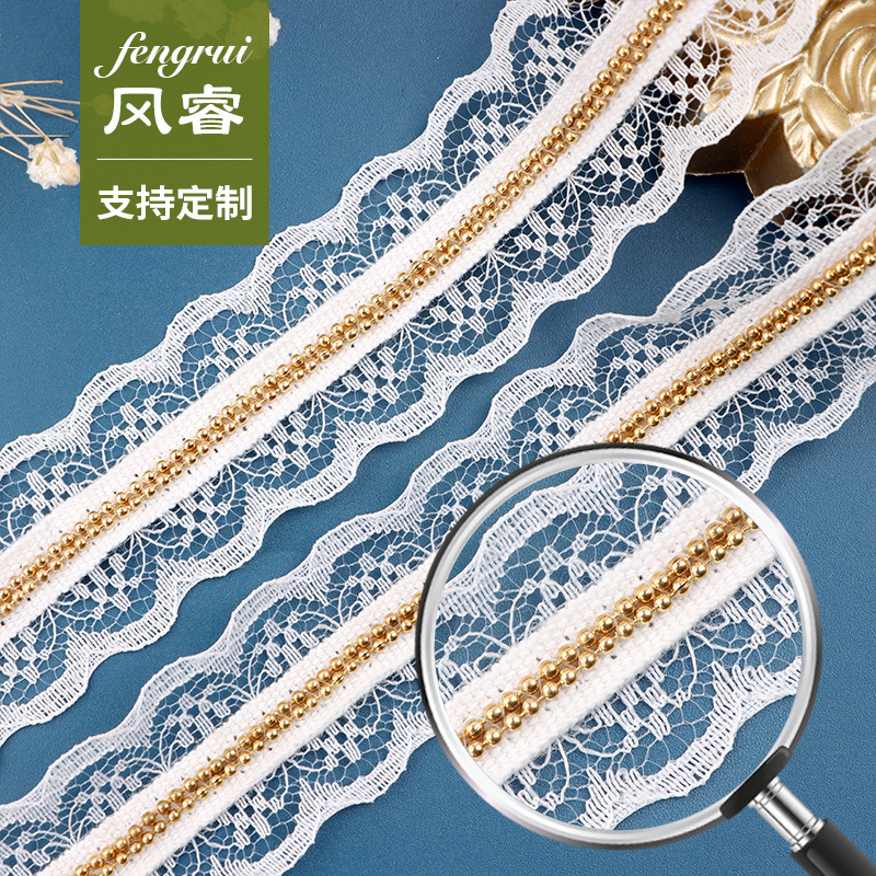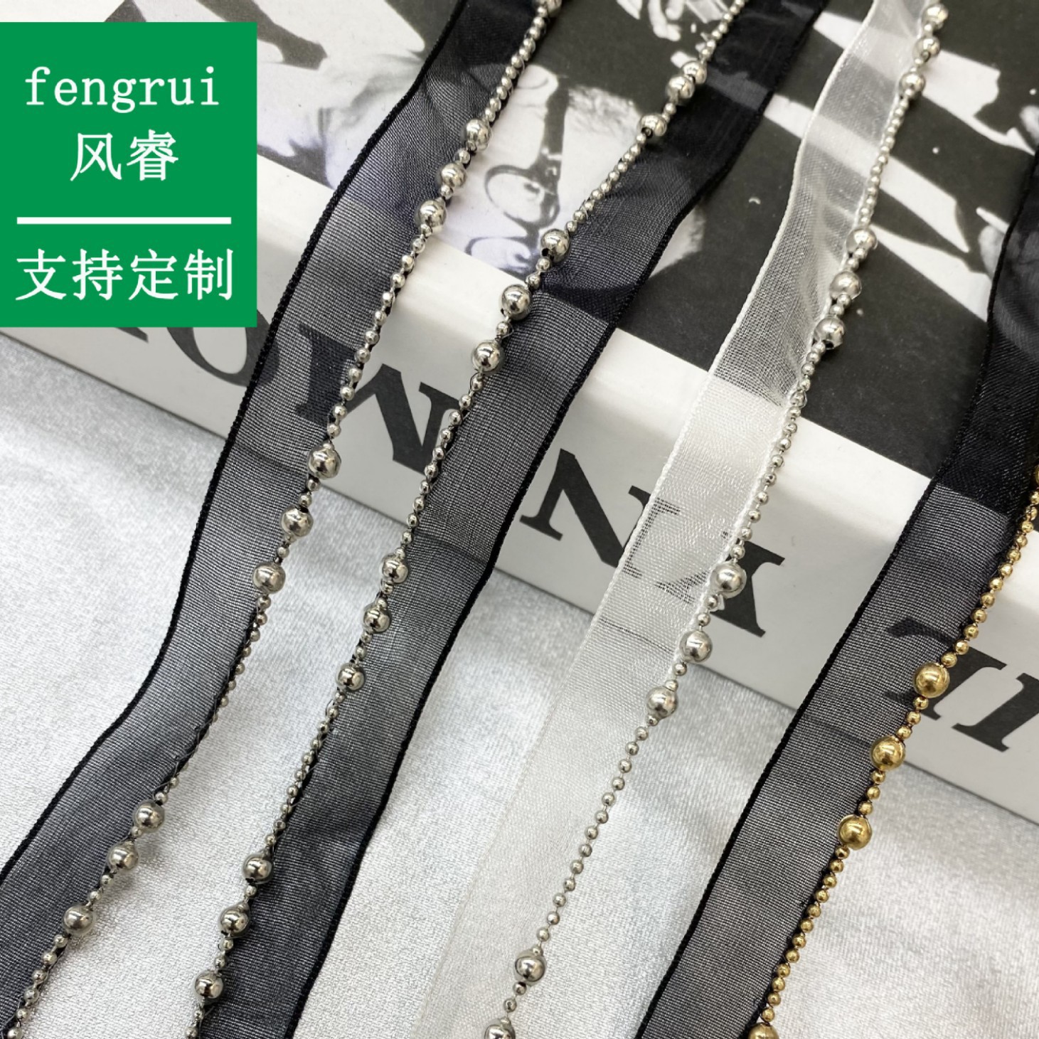 新款网纱1.5珠金属链条小香风蕾丝花边衣领裤边装饰辅料