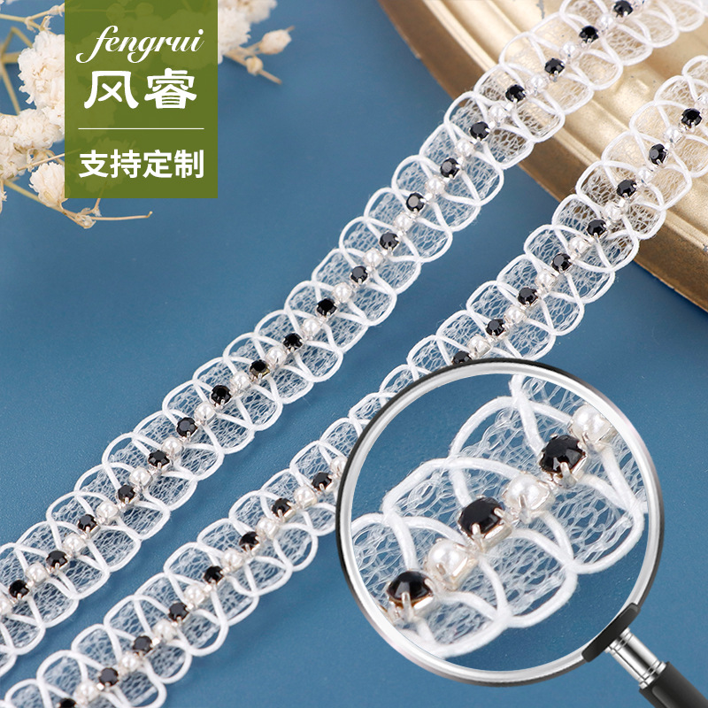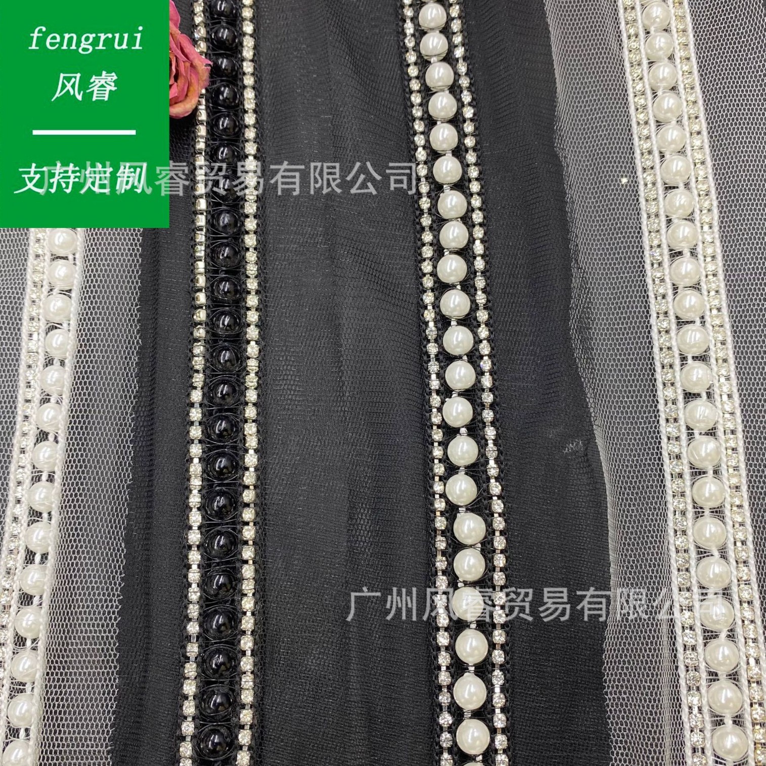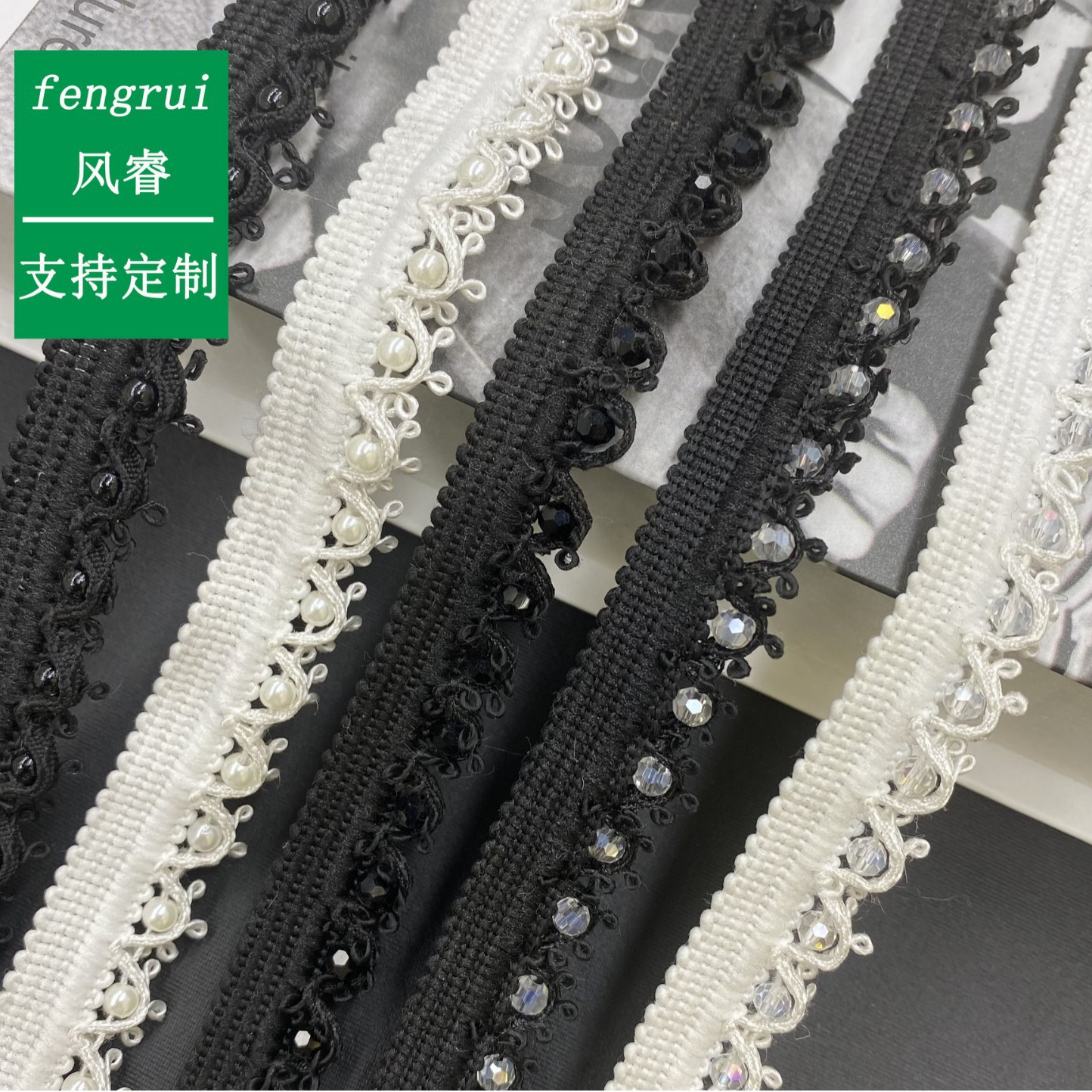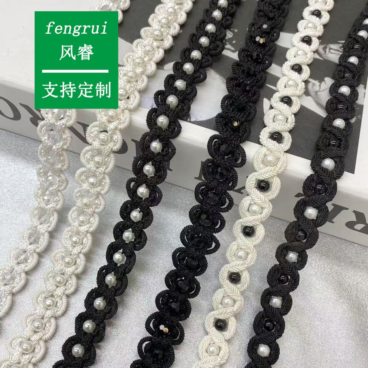 新款黑白小香风水晶珍珠织带花边diy服装旗袍婚纱辅料配饰