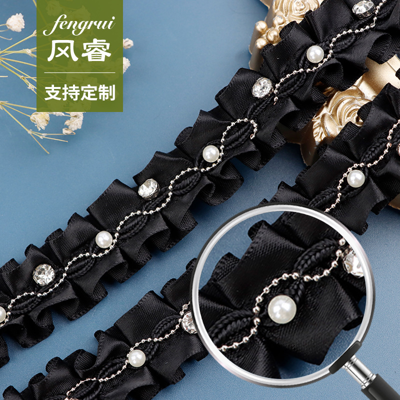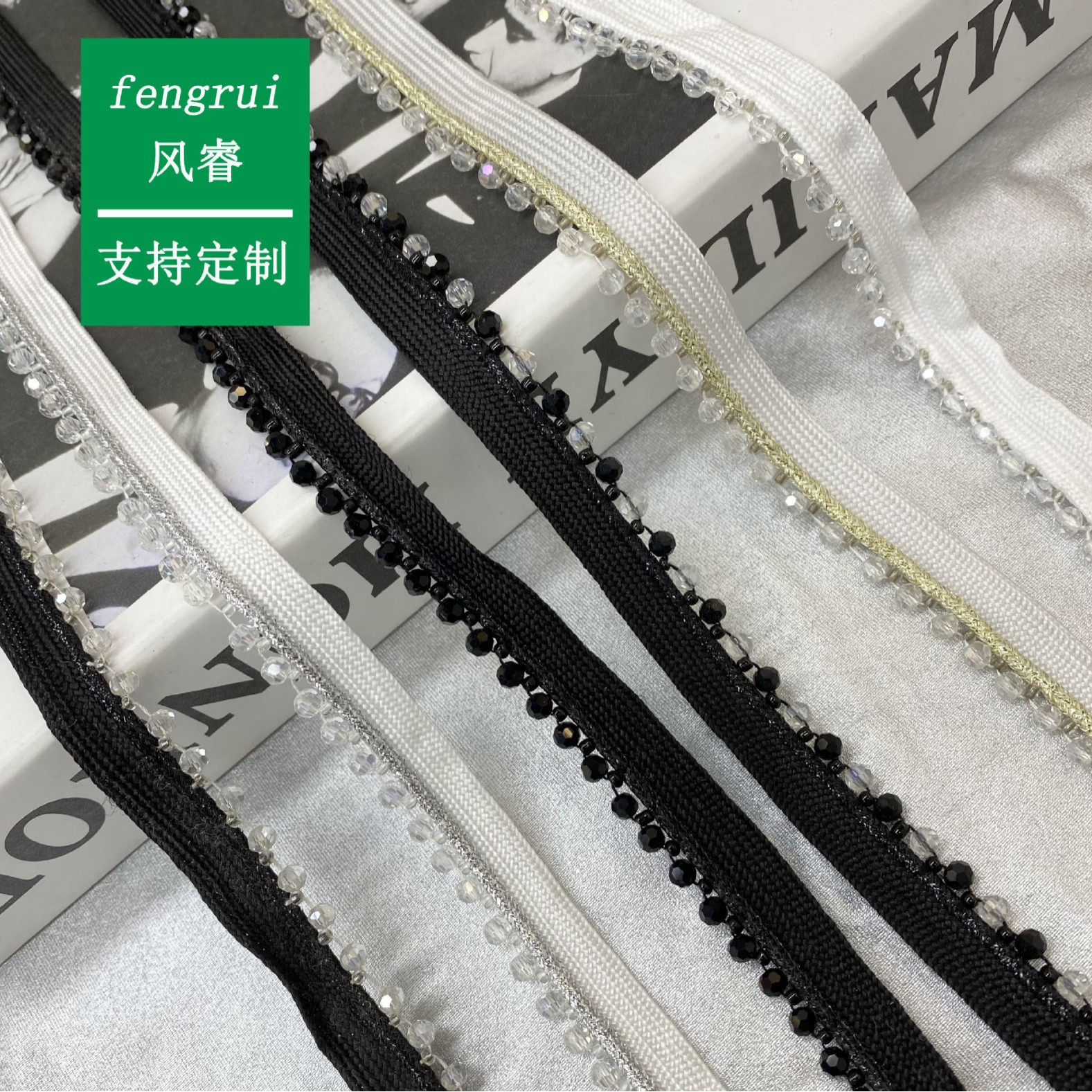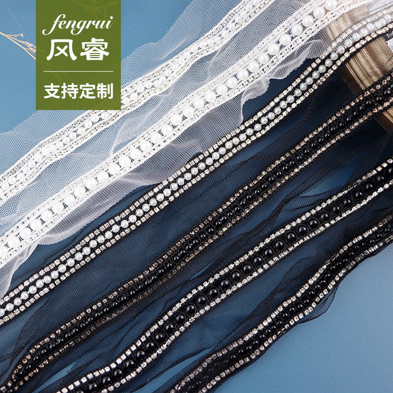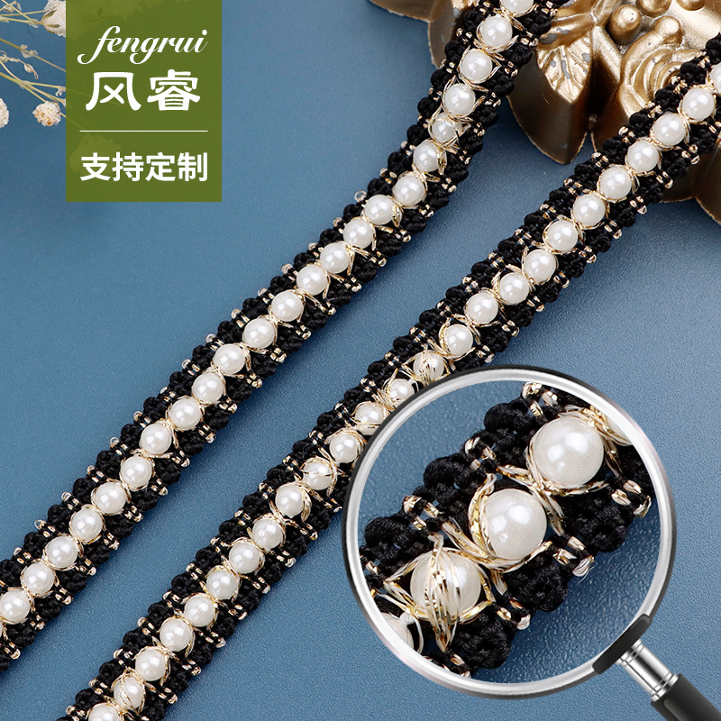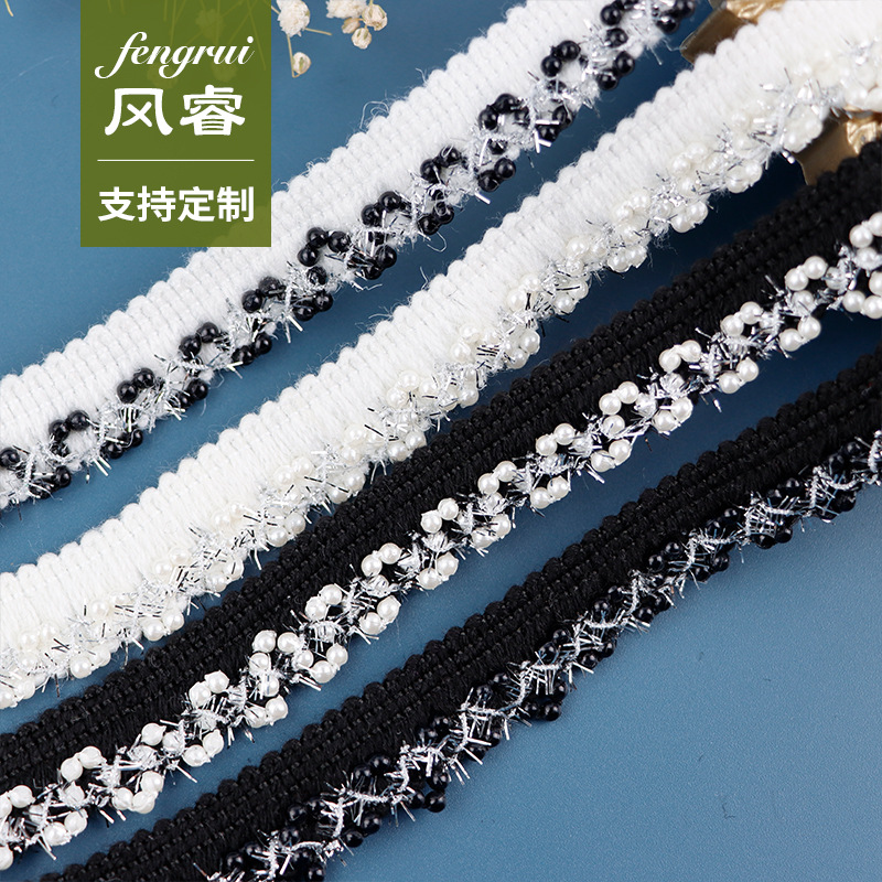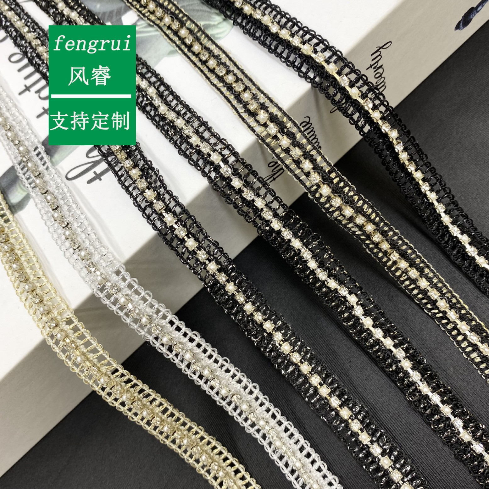 新款黑白小香风水晶珍珠织带花边diy服装旗袍婚纱辅料配饰