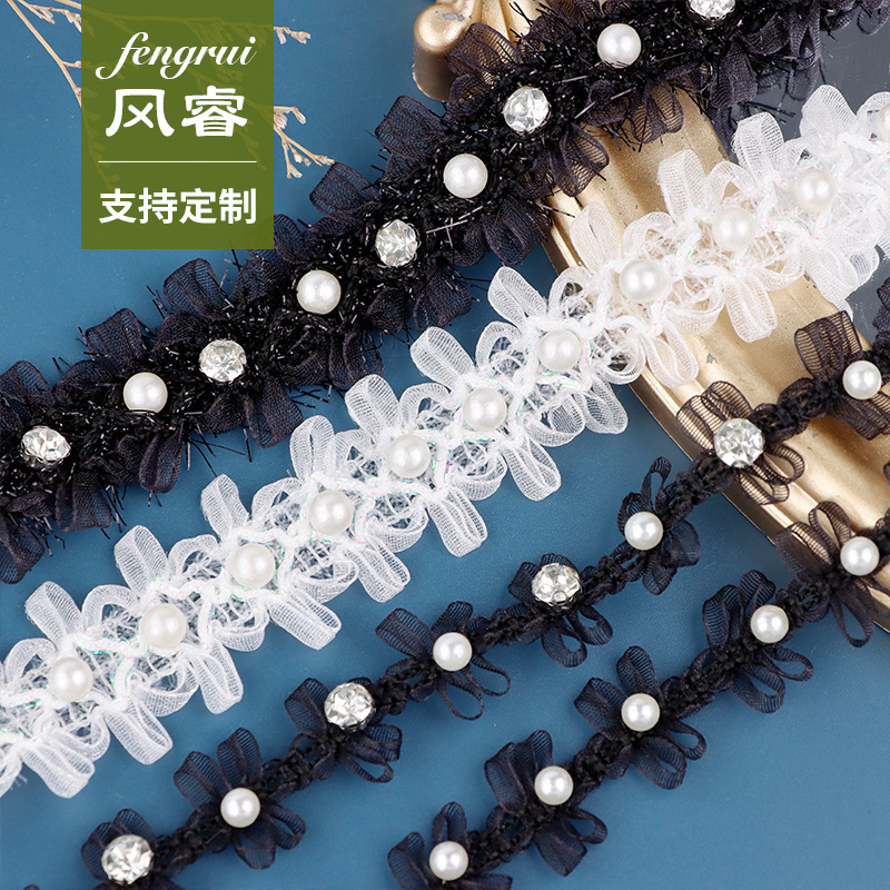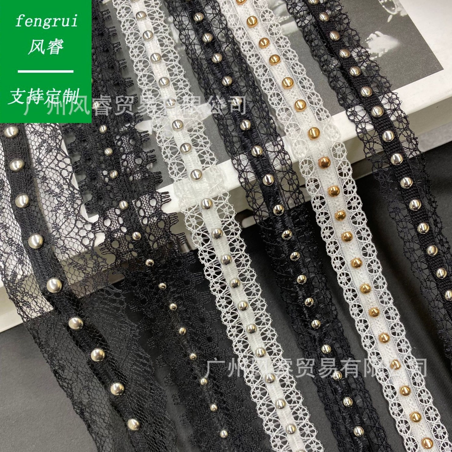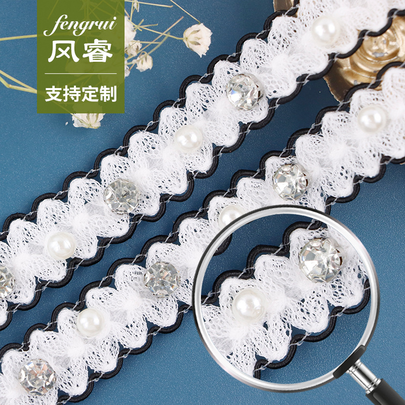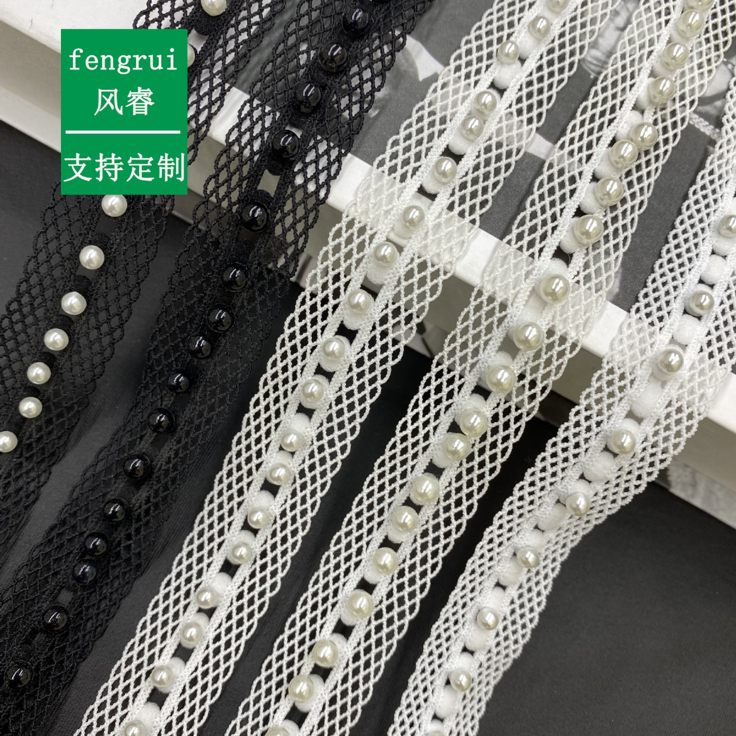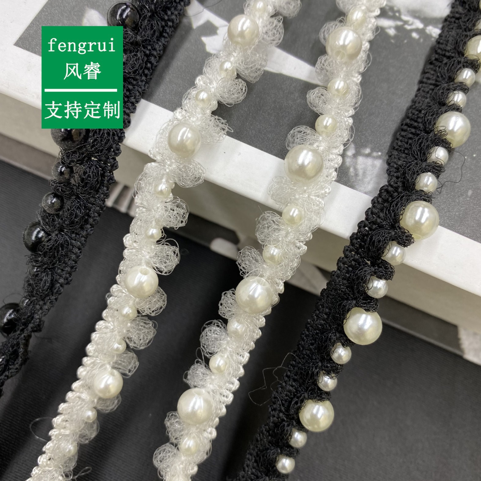 新款现货黑白蕾丝织带珍珠手工DIY衣服装饰百搭配饰花边辅料