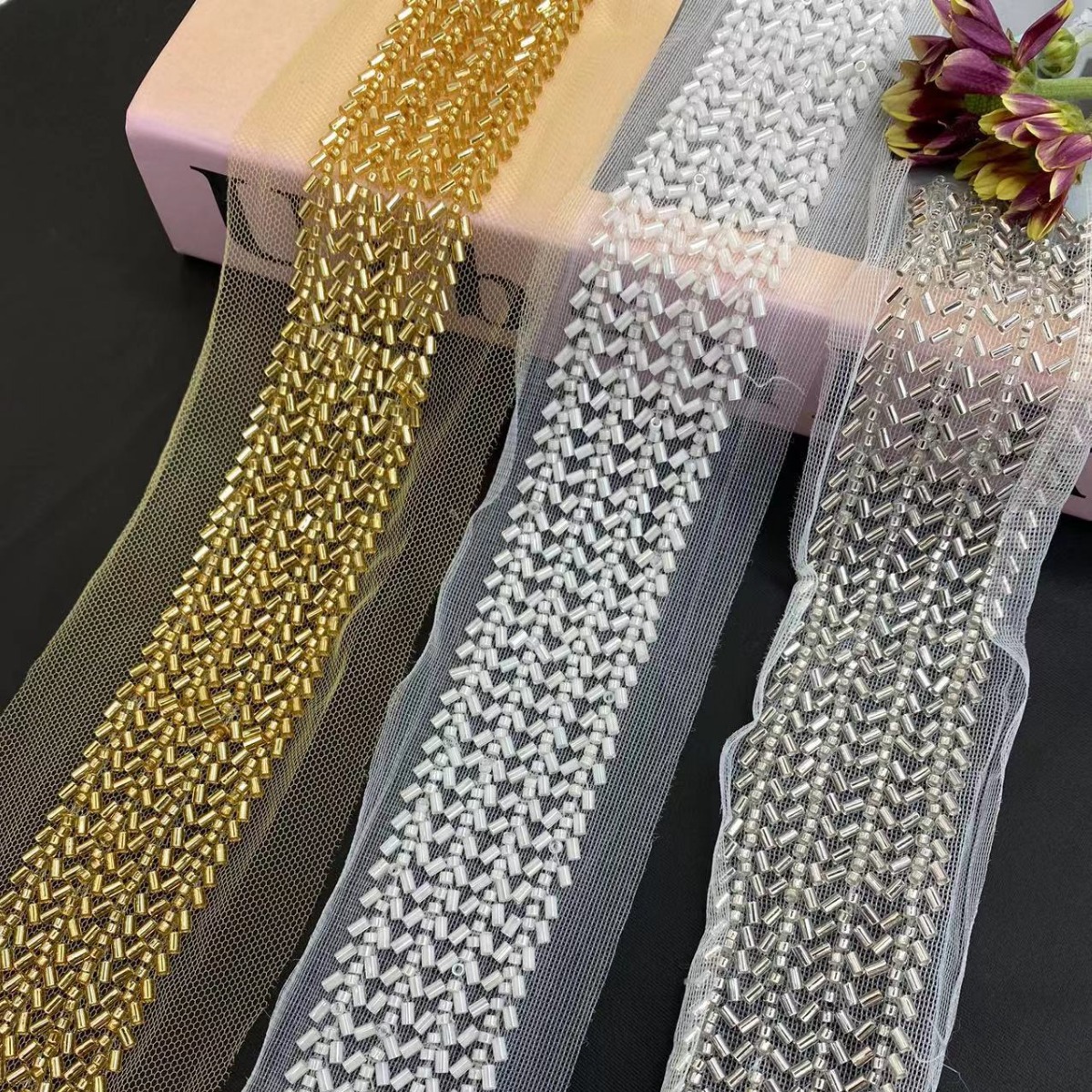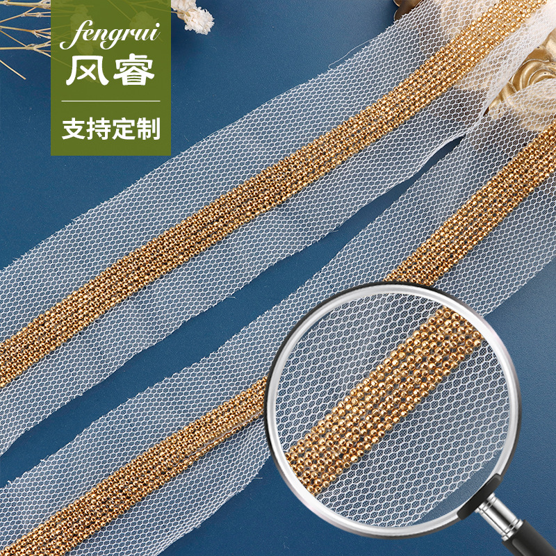 金银丝单边网纱水晶花边手工钉珠织带服装装饰DIY花边辅料