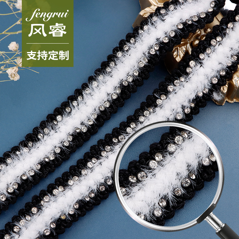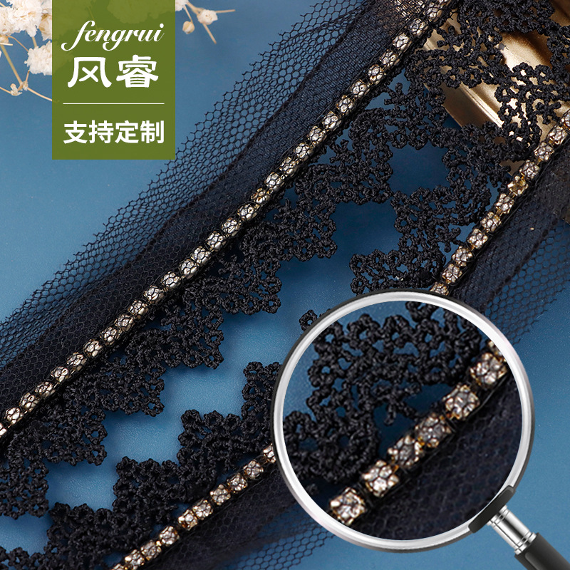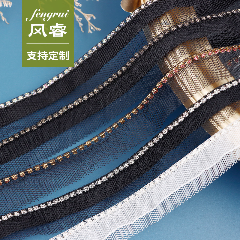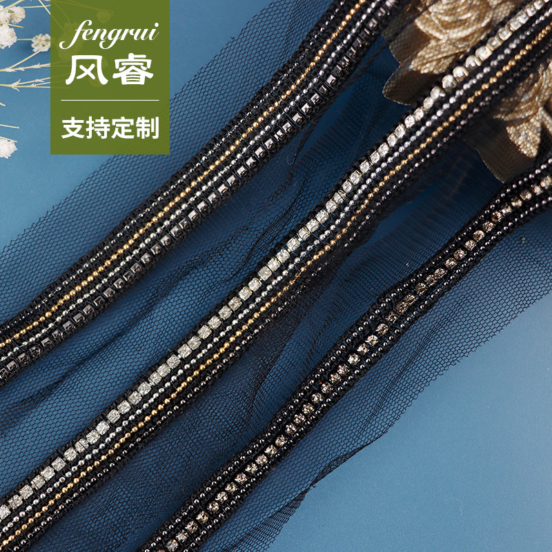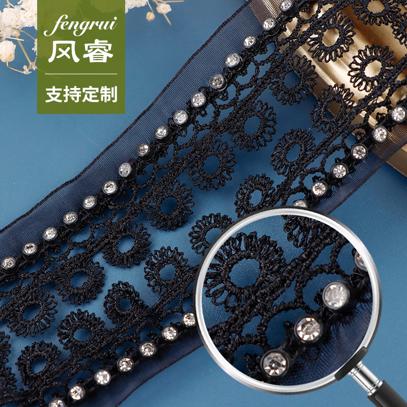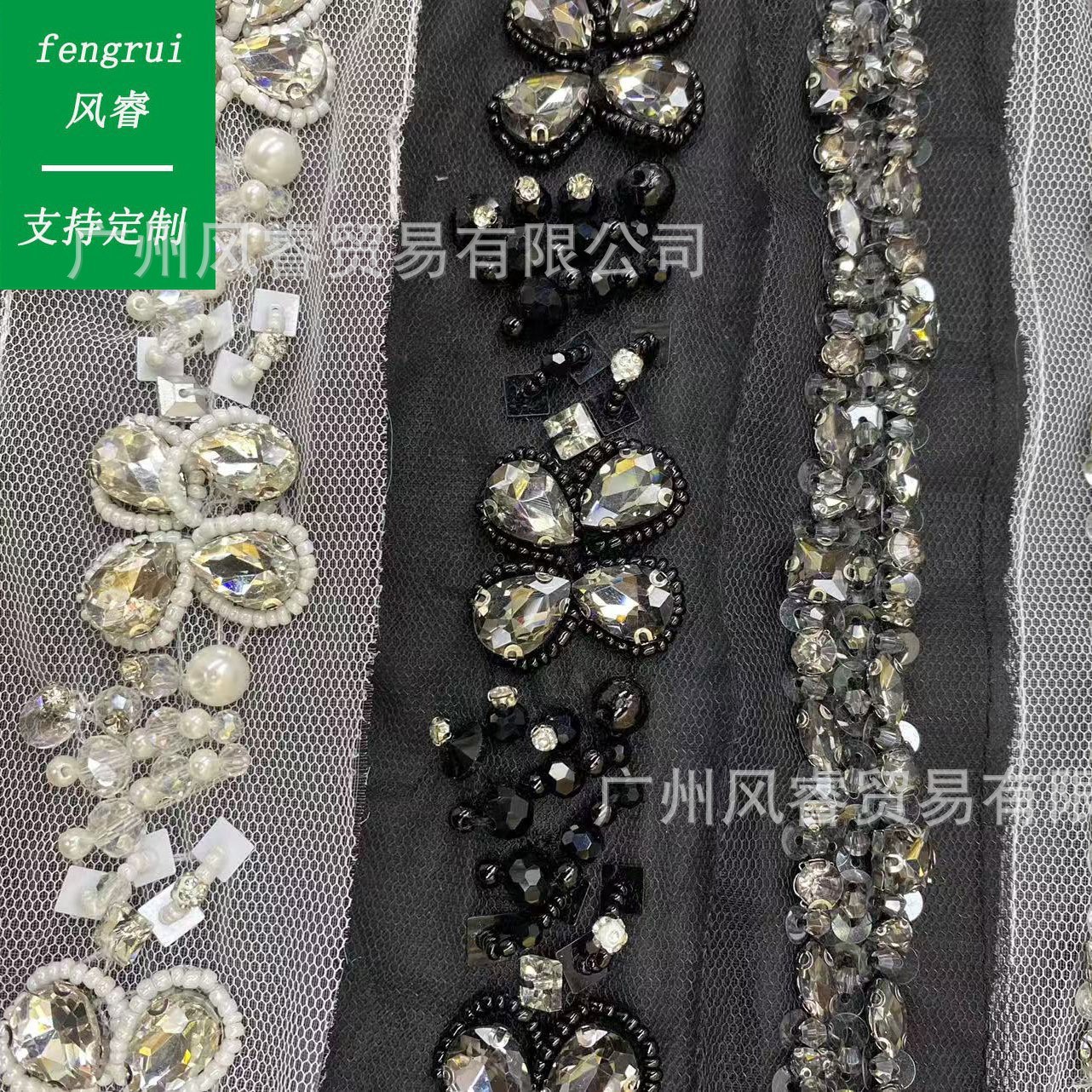 厂家直销批发黑白网纱底水钻彩钻流苏钻链水溶绣条服装辅料汉服裙