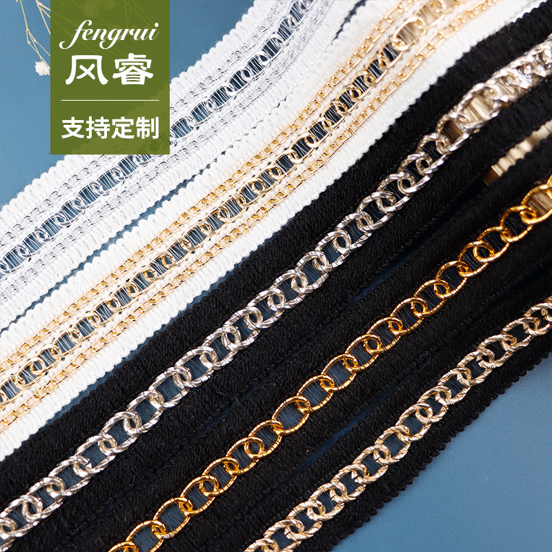 厂家直供现货服饰搭配金铜链网纱裙摆窗帘针织DIY花边辅料