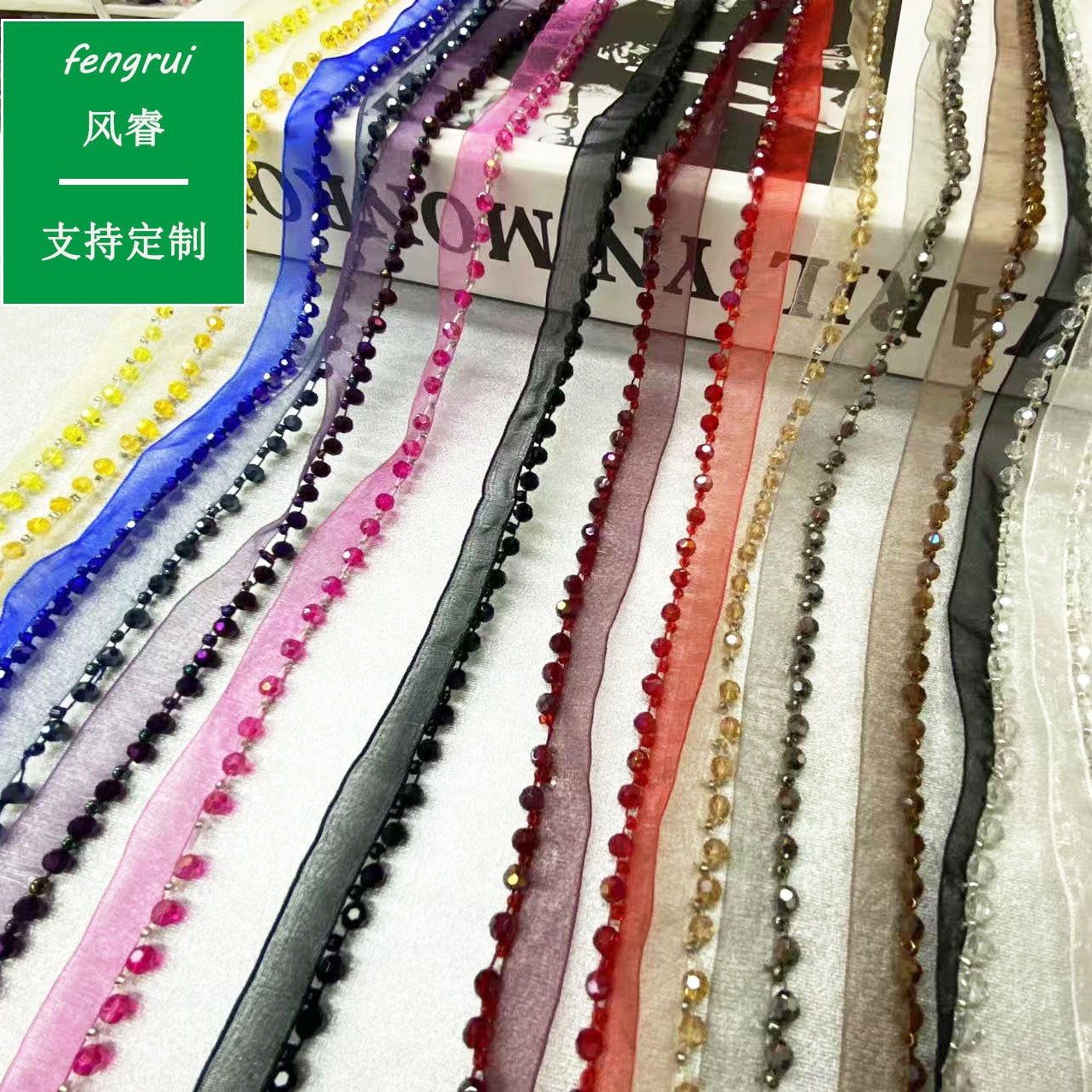 新款多色手工水晶纱带镶嵌子母花边手工diy配饰串珠辅料