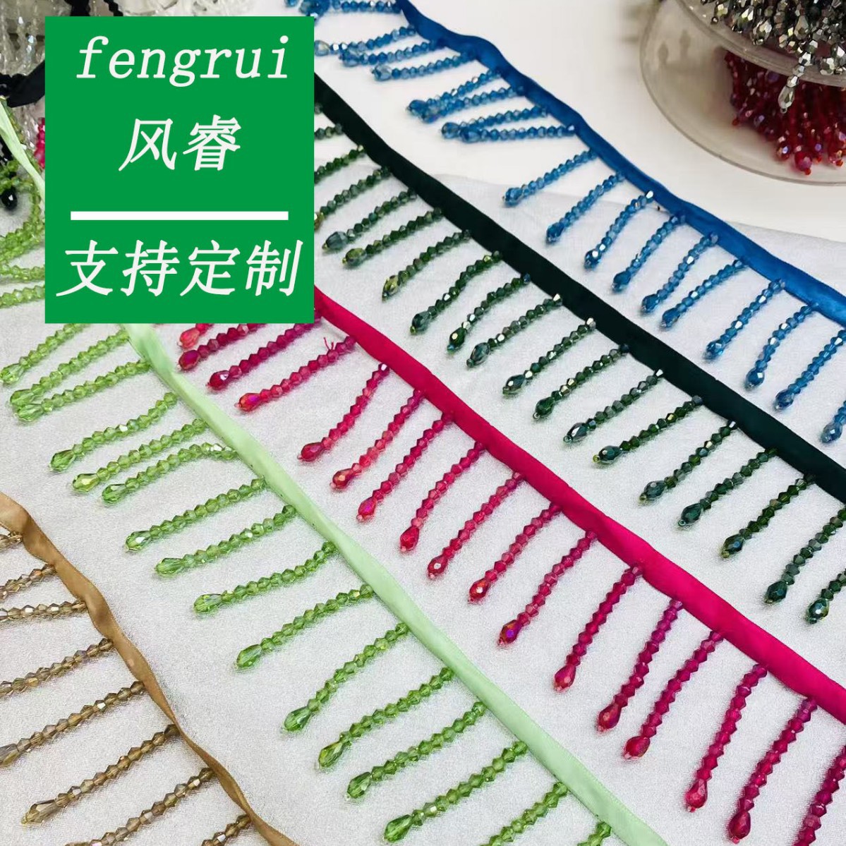 新款重工水晶珠吊坠串珠流苏花边 衣服diy窗帘弹力装饰辅料服装