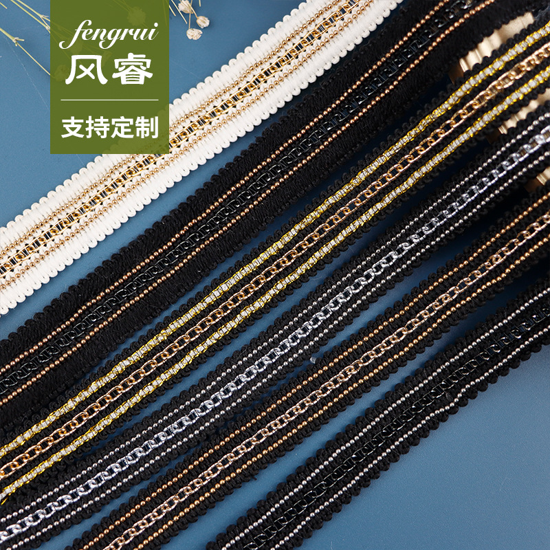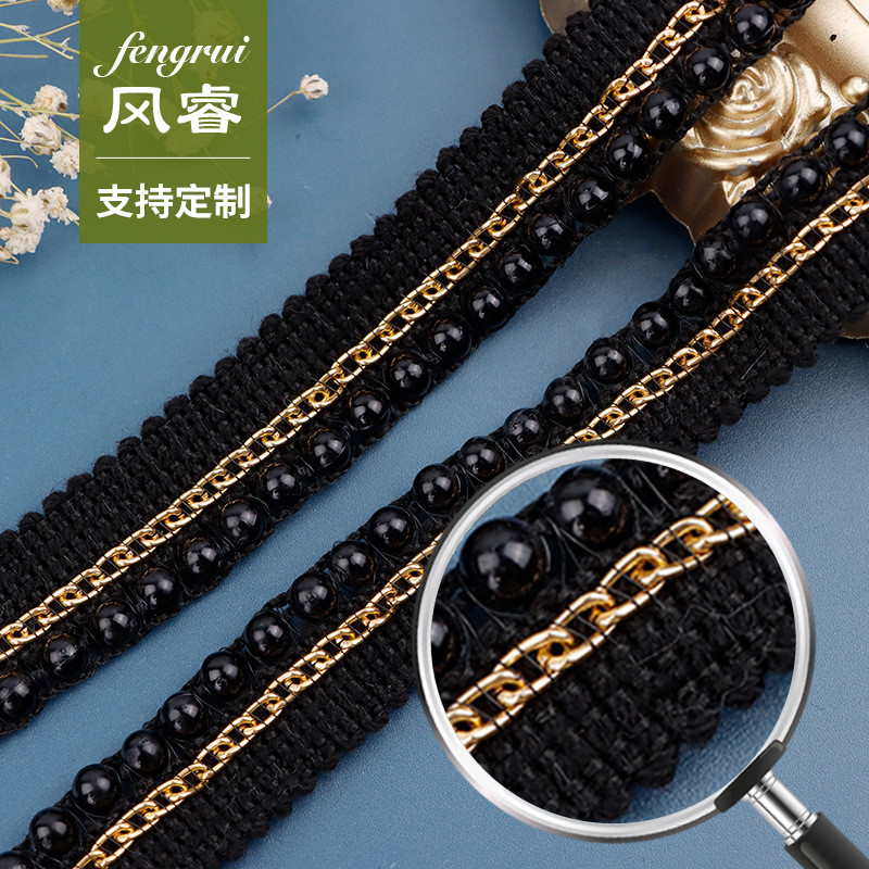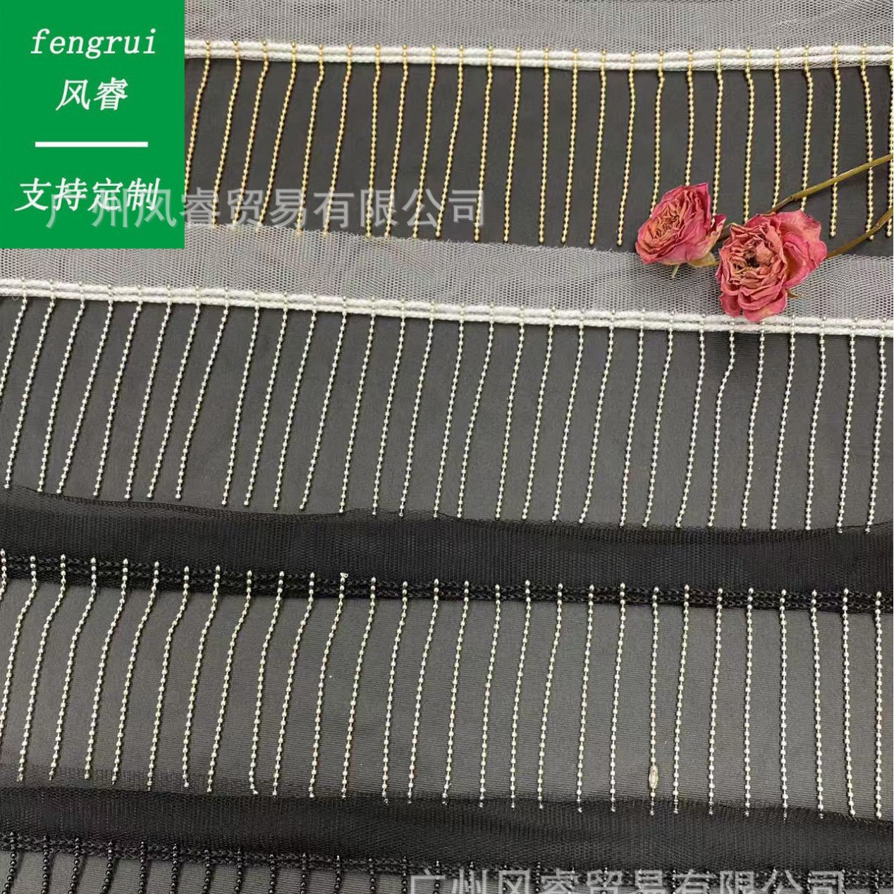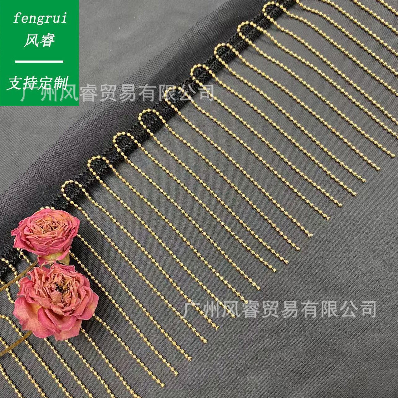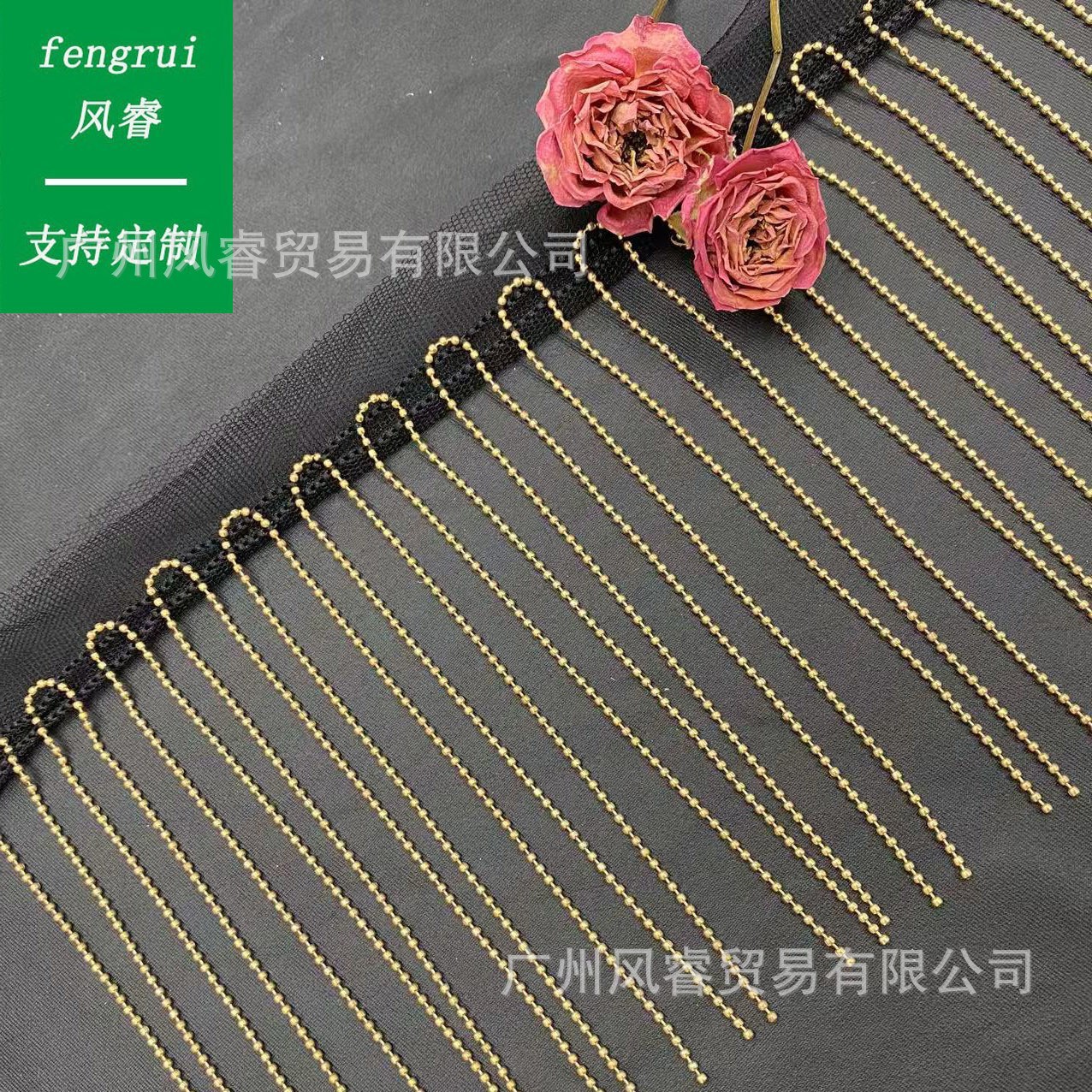 2025新款厂家直供黑色蕾丝花边缝纫纱服装服饰搭配金色链珠