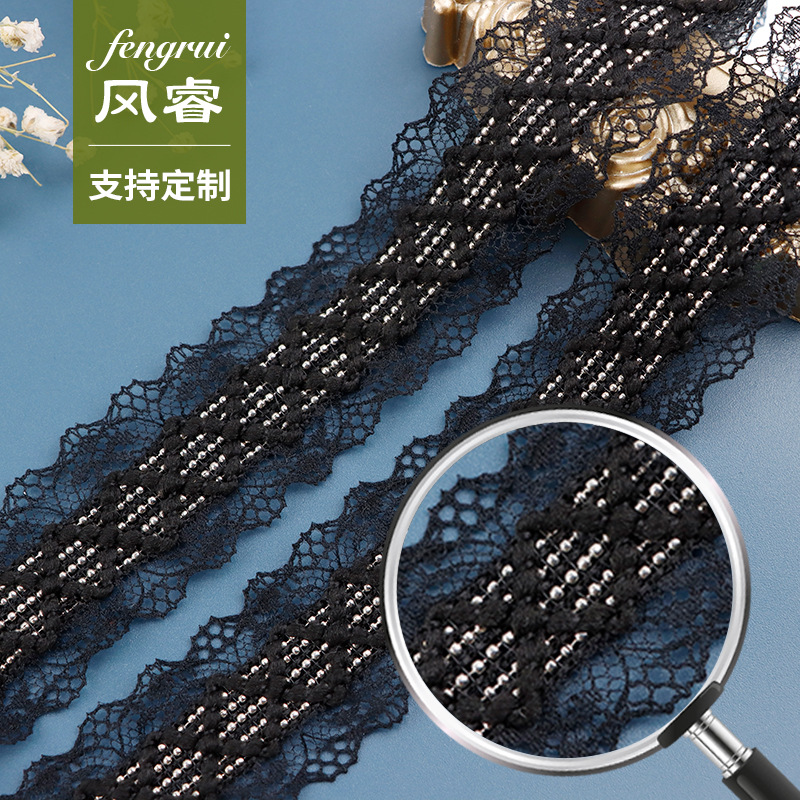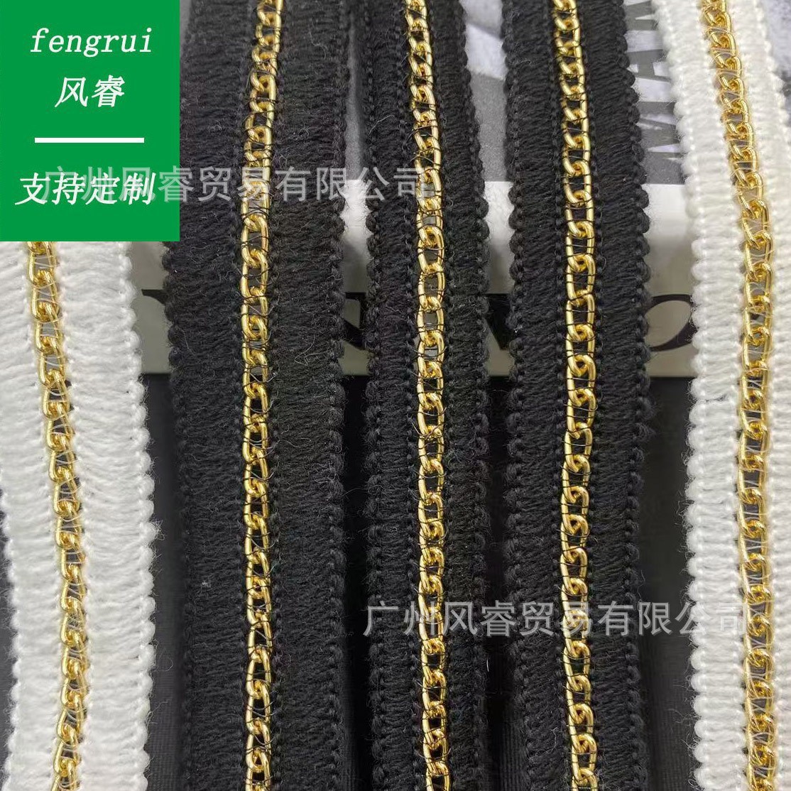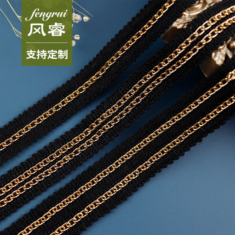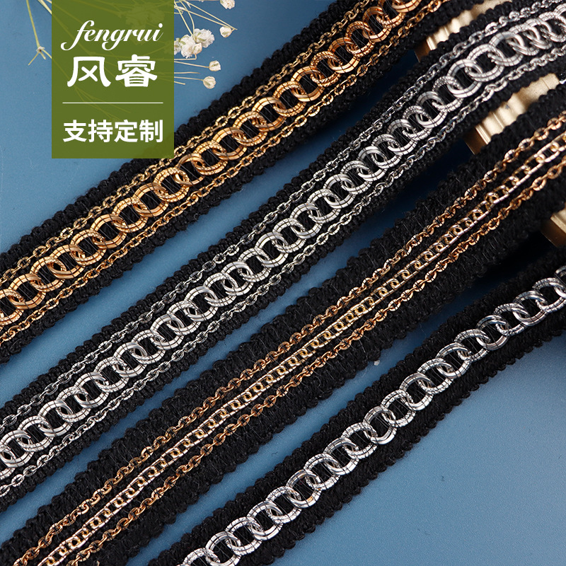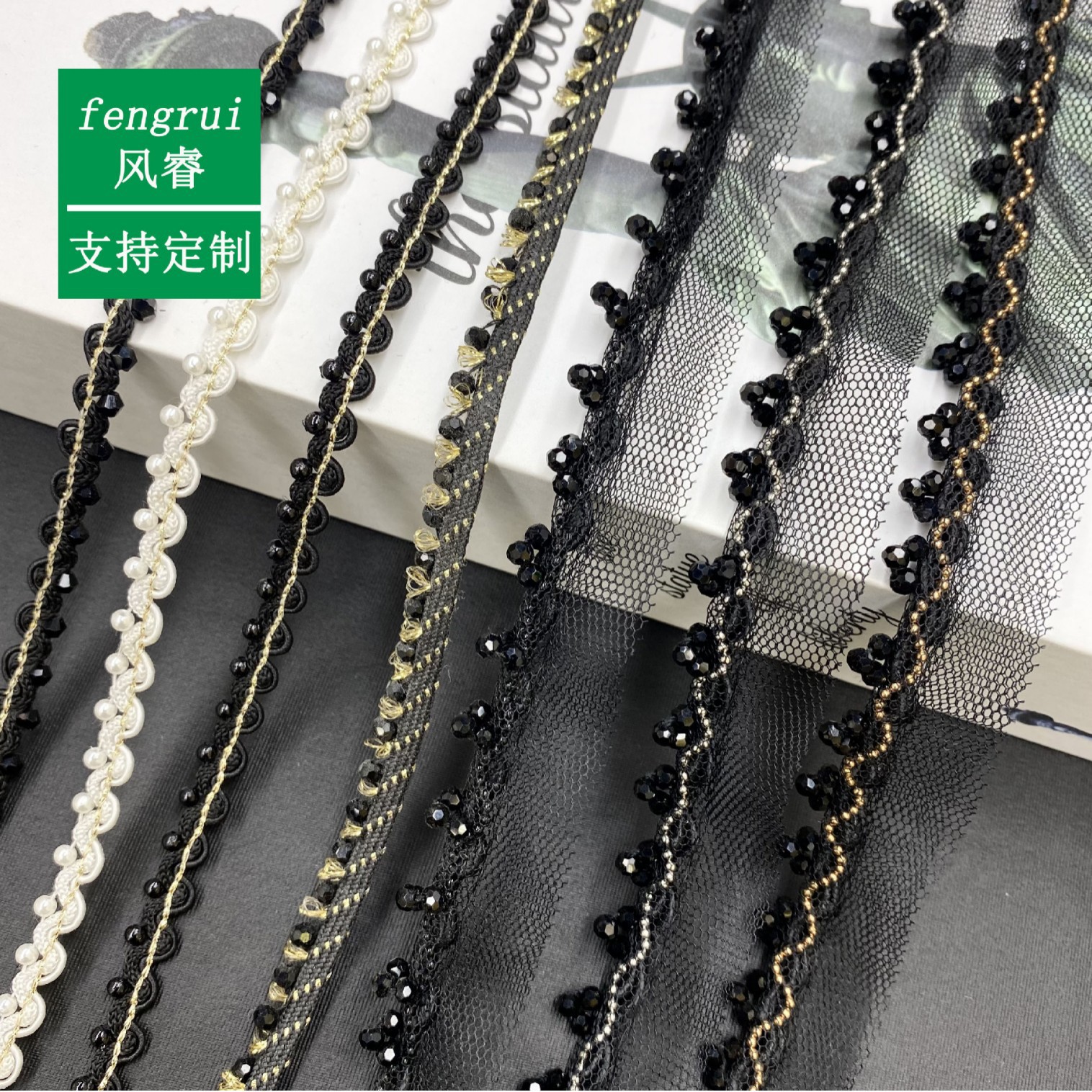 2025新款厂家直供黑色蕾丝花边缝纫纱服装服饰搭配金色链珠
