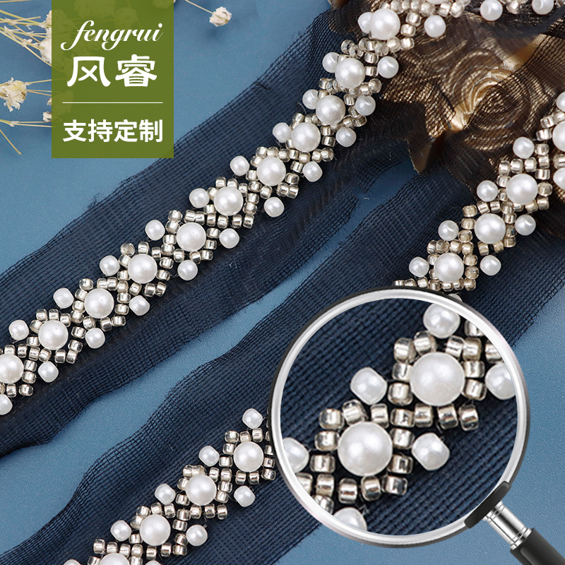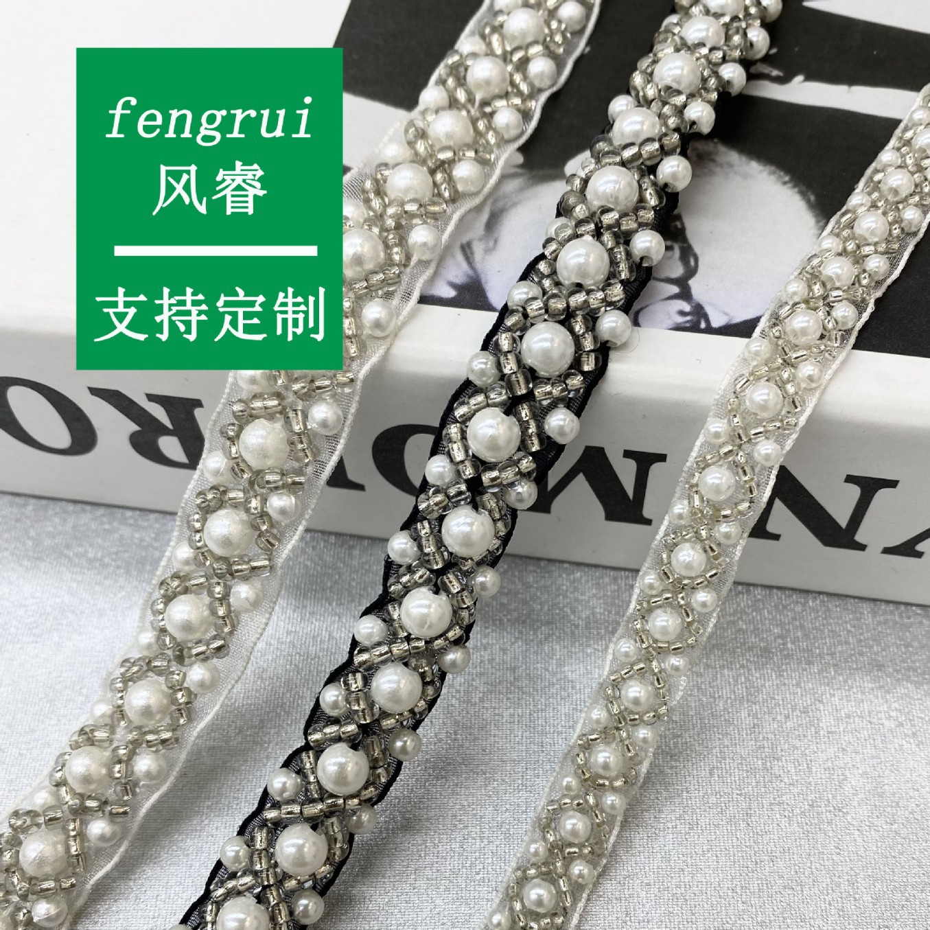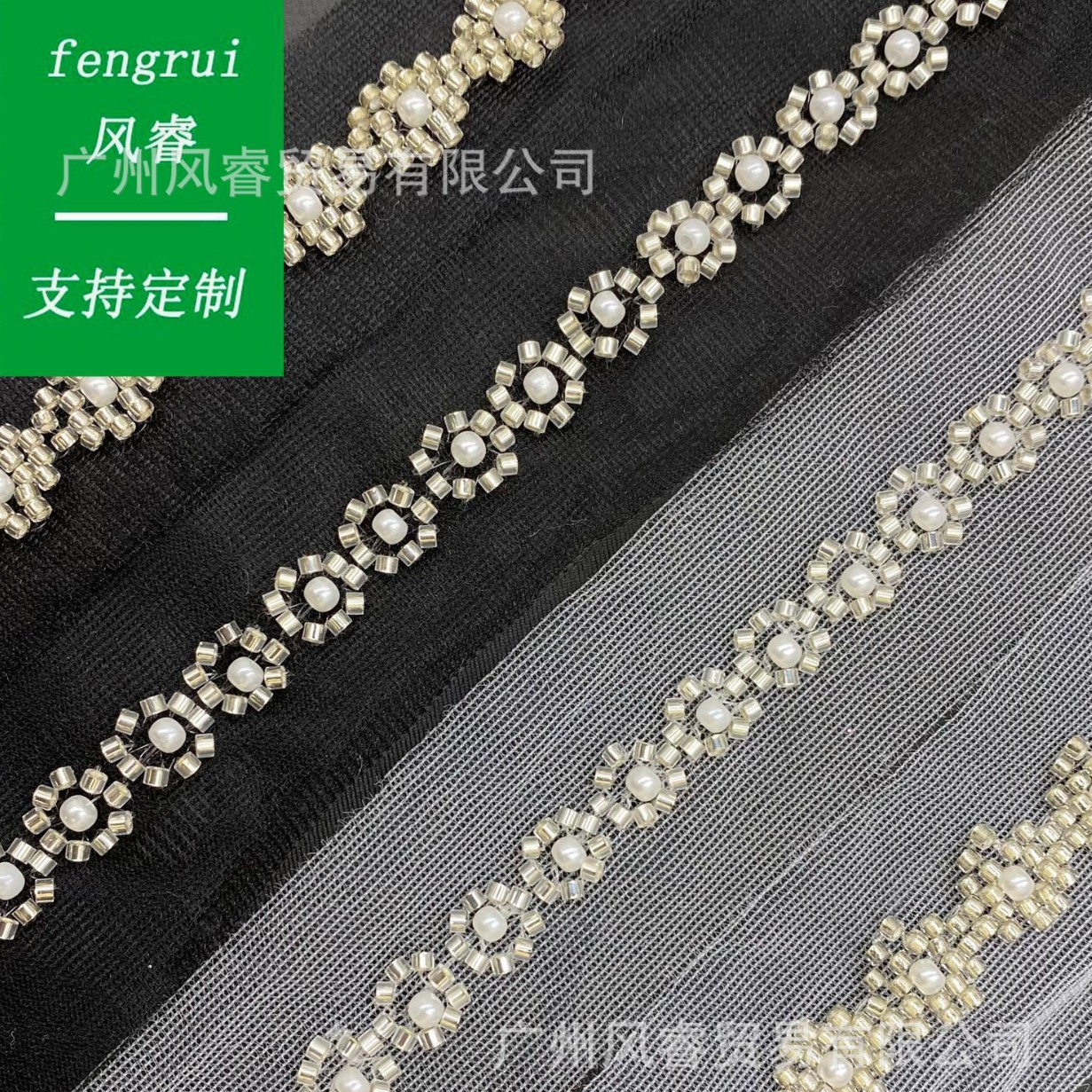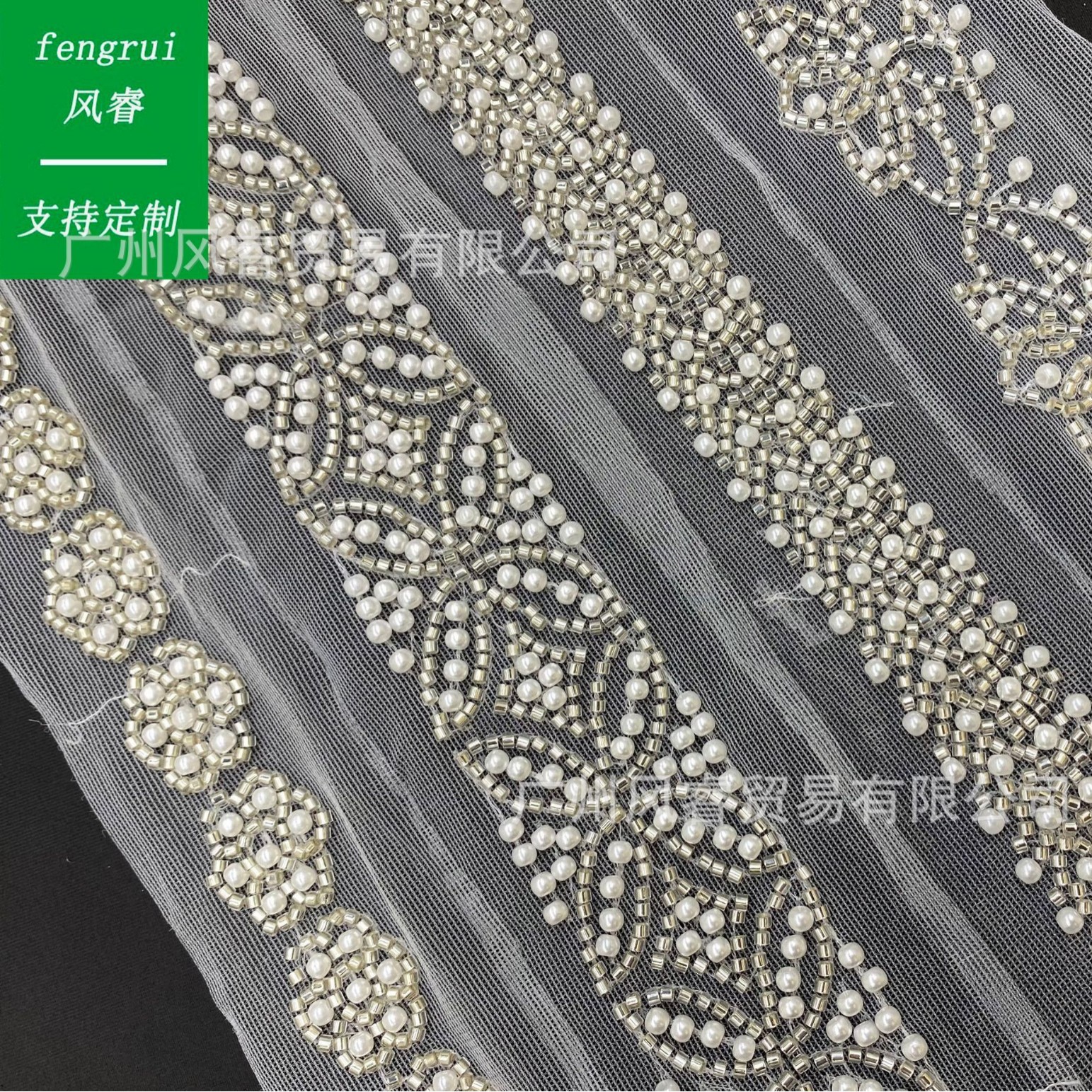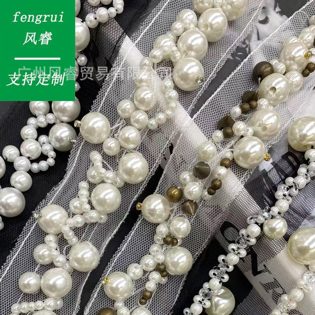 现货机绣米珠花边 手工钉珠珍珠水钻衣服装饰diy服装花边辅料蕾丝