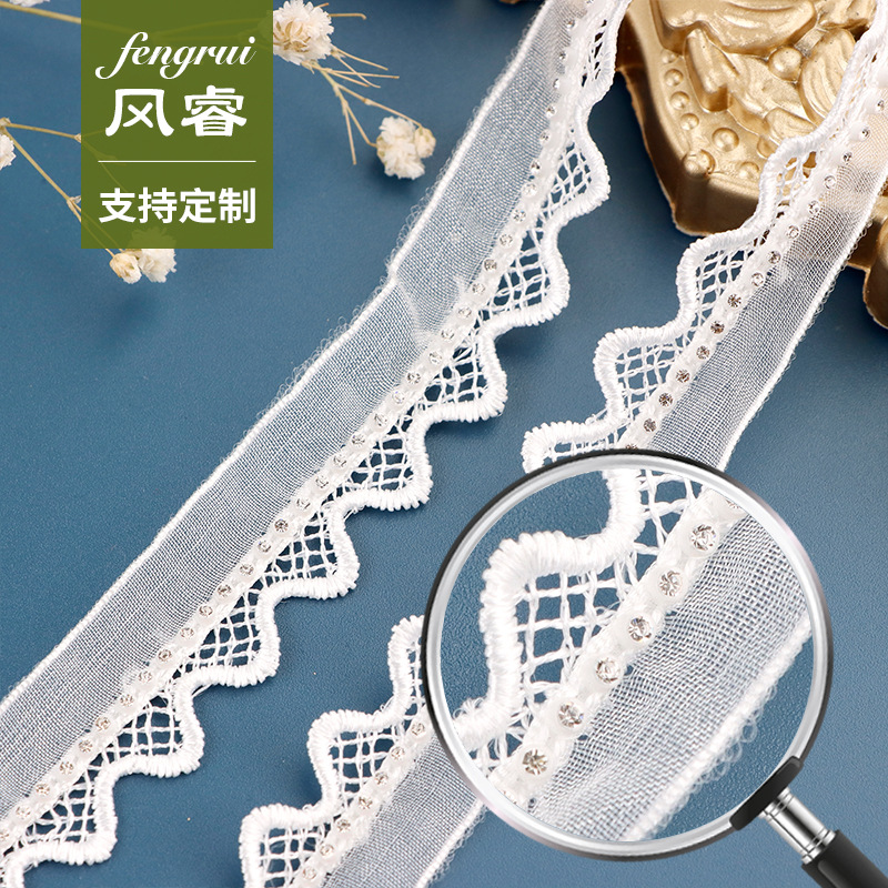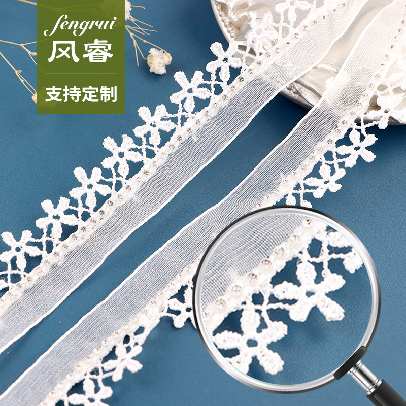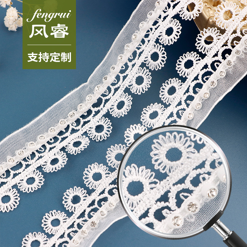 现货小香风白色涤光带钻水溶蕾丝diy服饰辅料窗帘装饰花边衣服