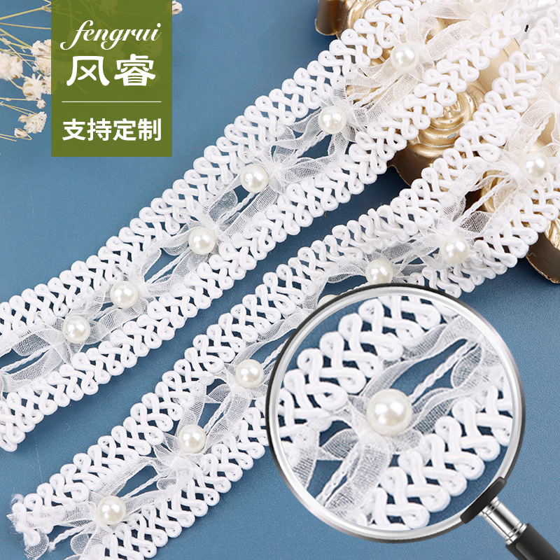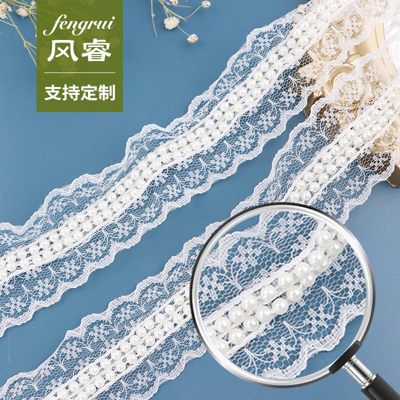 花边辅料珍珠针织花边婚纱服装花边辅料弹力蕾丝花边辅料现货批发
