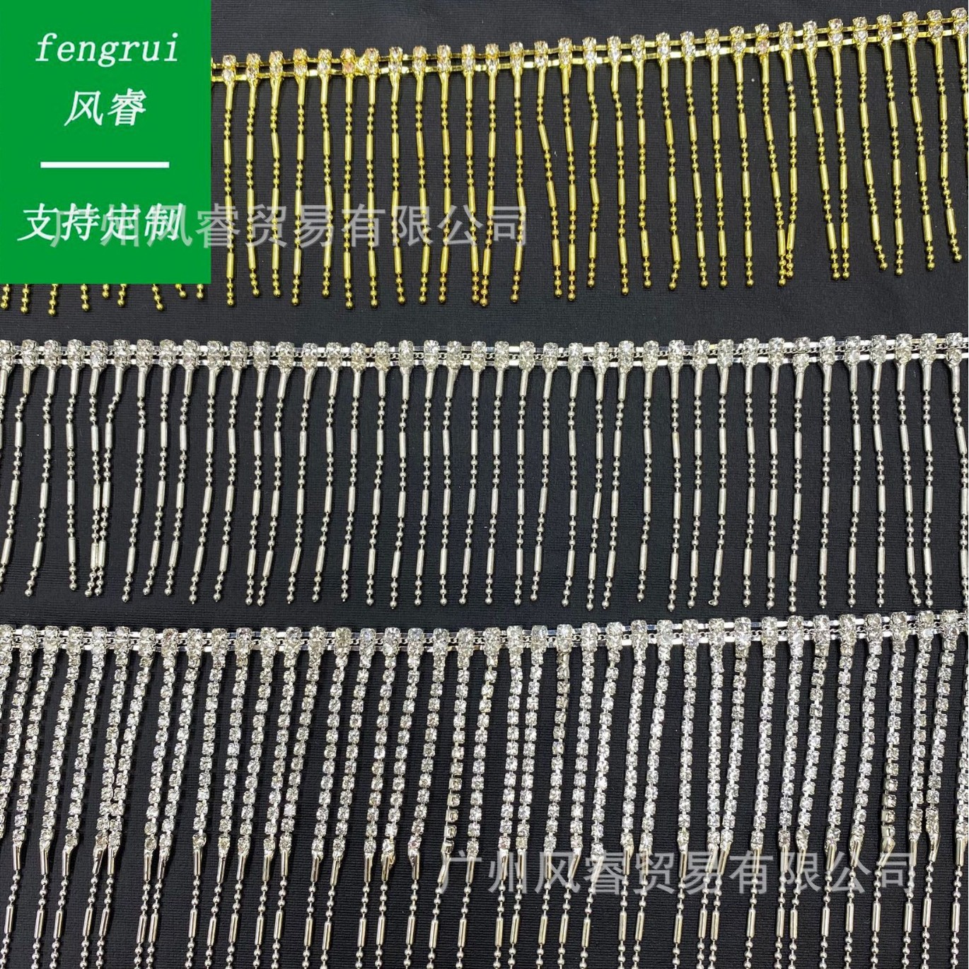 厂家现货3公分剪三刀网纱绣珠链流苏花边 金属链条排须DIY服装