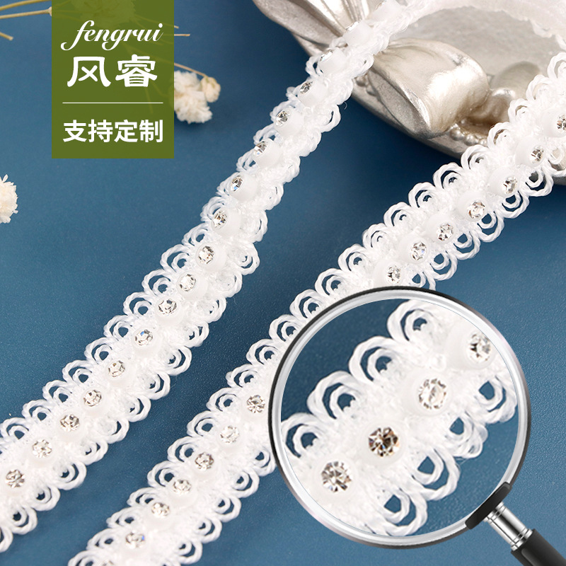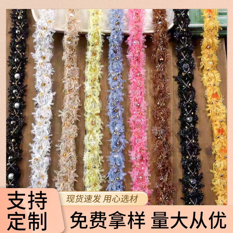 新款窗帘花边帐辅料服饰裙边人造丝花边钉珠DIY头饰批发现货