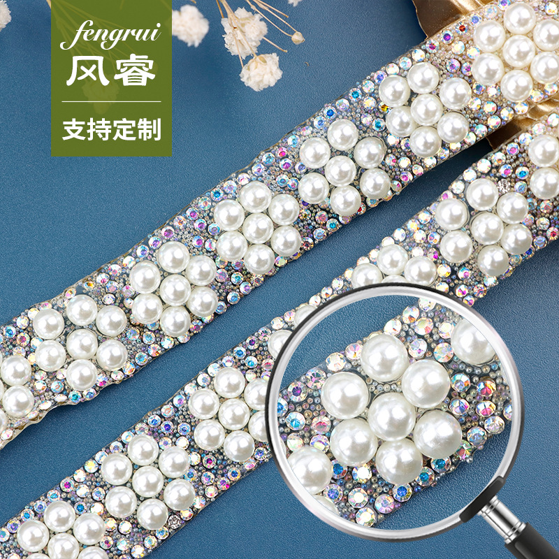 新款单边水晶子母织带手工钉珠DIY装饰汉服饰品辅料