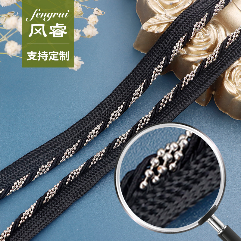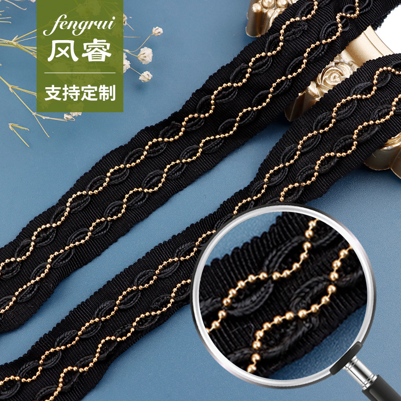厂家珠链黑色织带花边 窗帘手工diy家纺袖口箱包家居服装弹力辅料