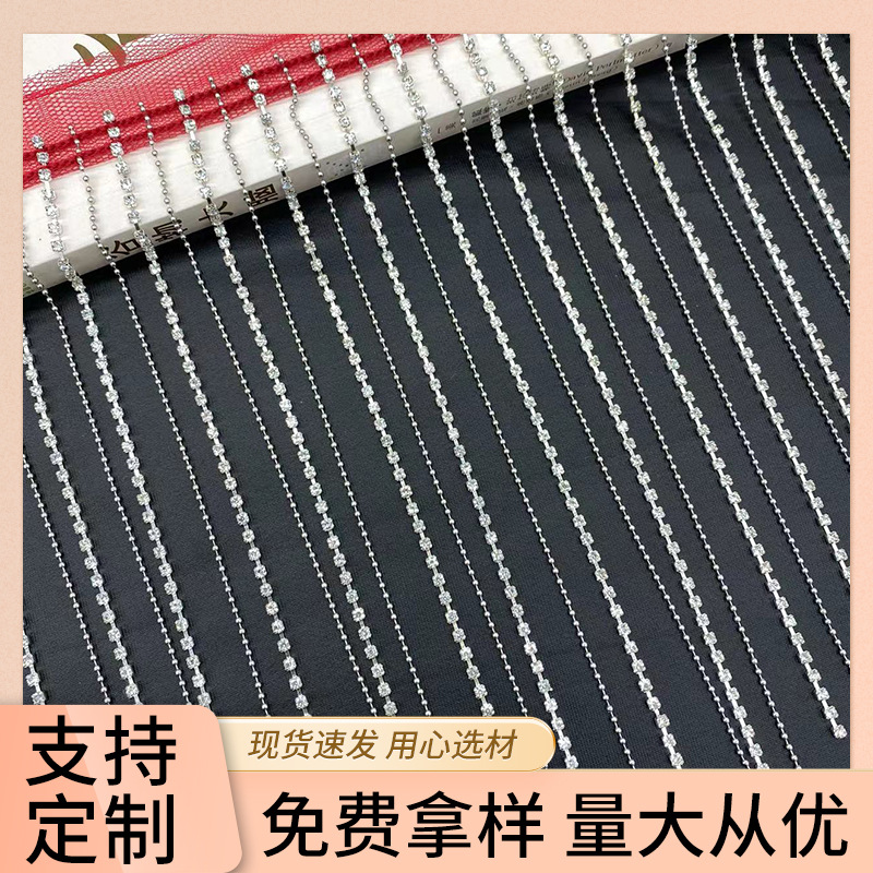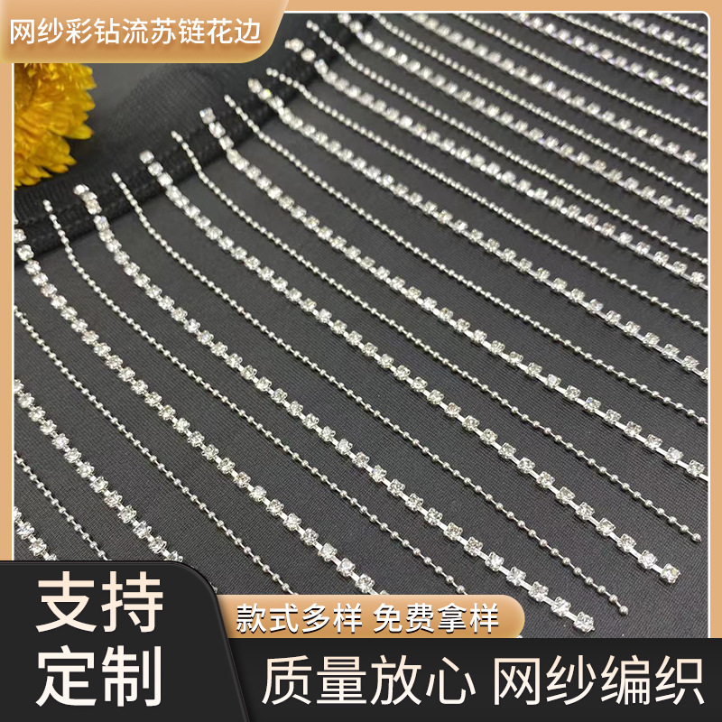 厂家现货珠钻链条网纱花边 鞋帽窗帘服装条码手工diy珠链蕾丝辅料