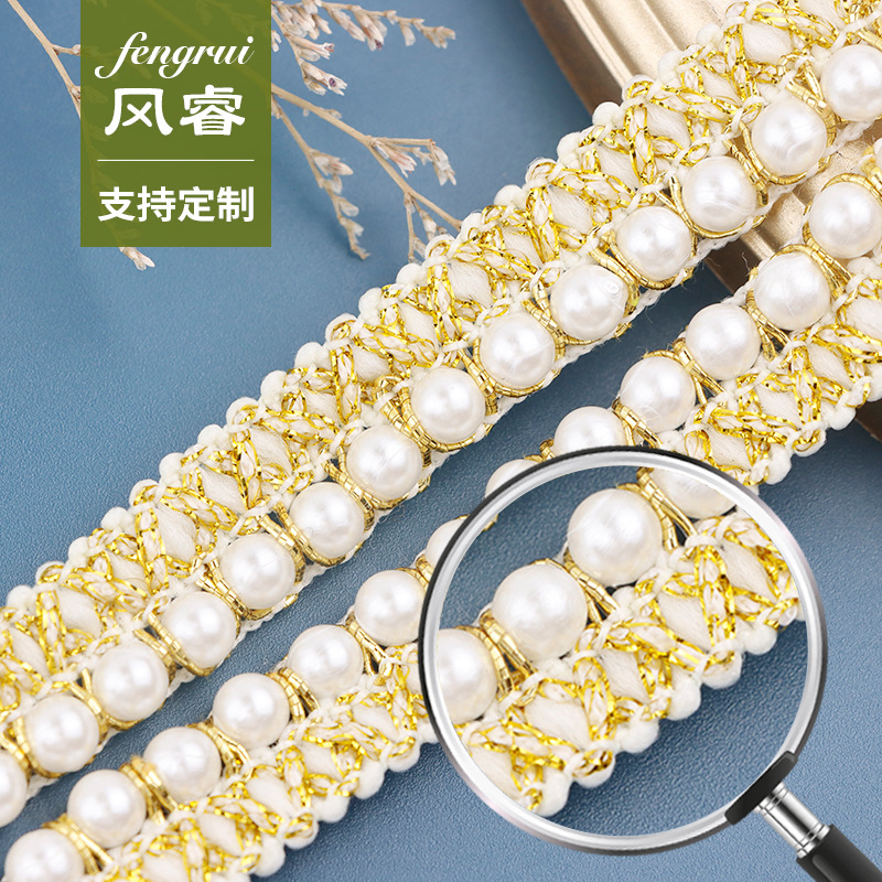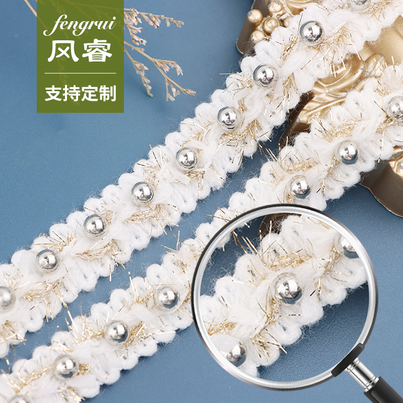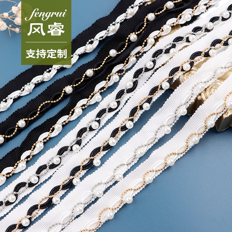 时尚仿珍珠手工diy小香风织带 衣服花边金属珠链织带时装饰品辅料