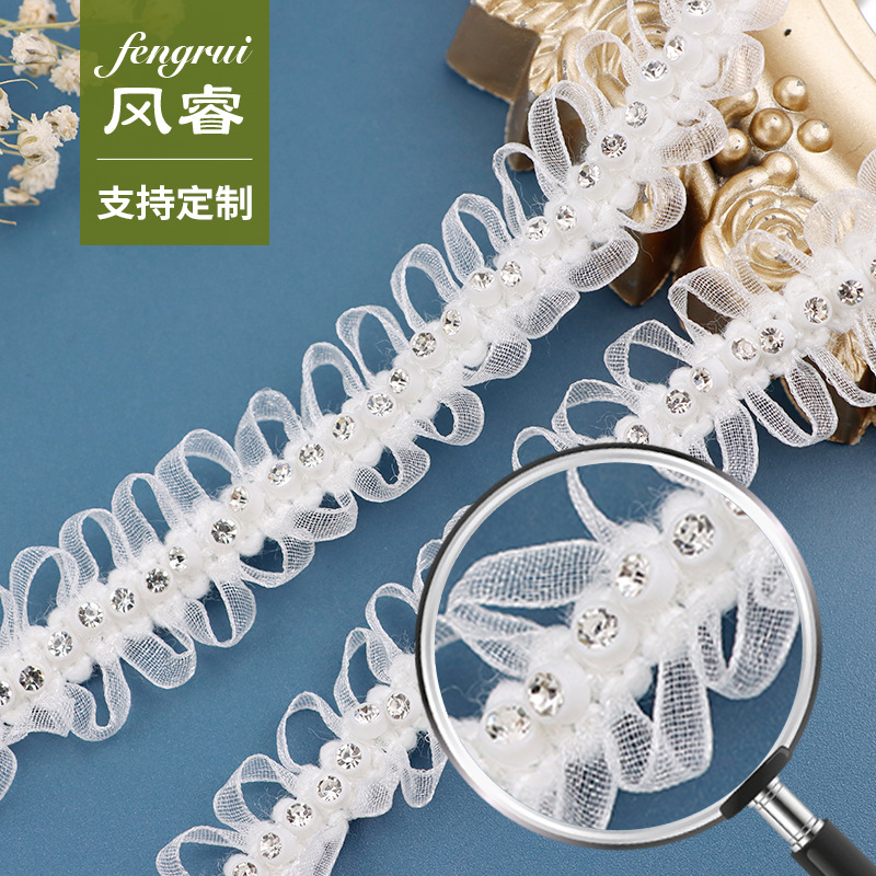 新款小香风网纱水晶泡珠花边diy裙边装饰辅料