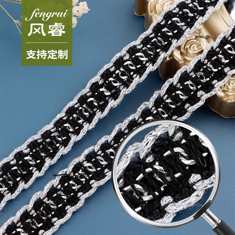 厂家镂空链条黑色织带花边 机织条码服装窗帘diy刺绣家具窗饰辅料
