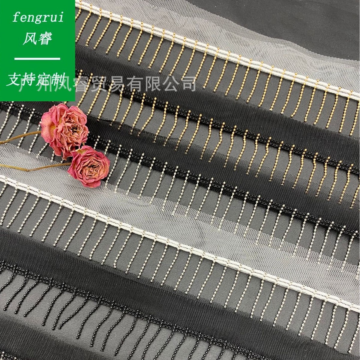 厂家现货20公分网纱绣珠链流苏花边 金属链条排须DIY服装箱包饰品