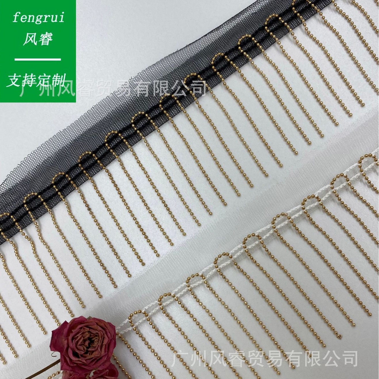 厂家现货12公分网纱绣珠链流苏花边 金属链条排须DIY服装箱包饰品