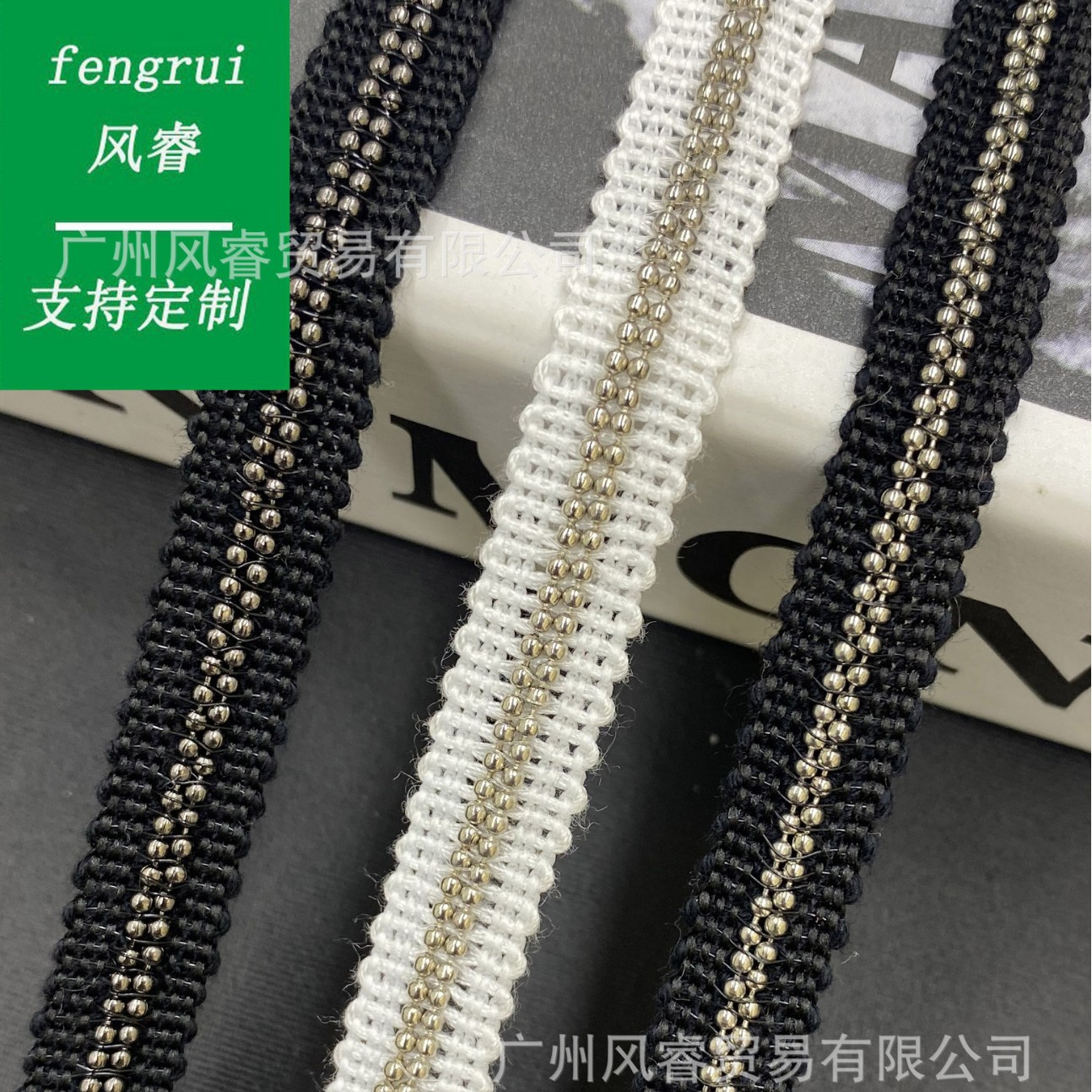 厂家现货黑白色单排纱带珠链花边织带衣服包包diy链条服装辅料