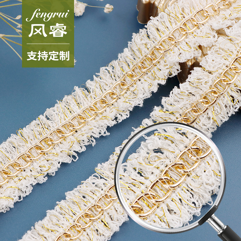 厂家小香风链条绒毛花边 箱包手工diy服装弹力饰品窗帘辅料批发