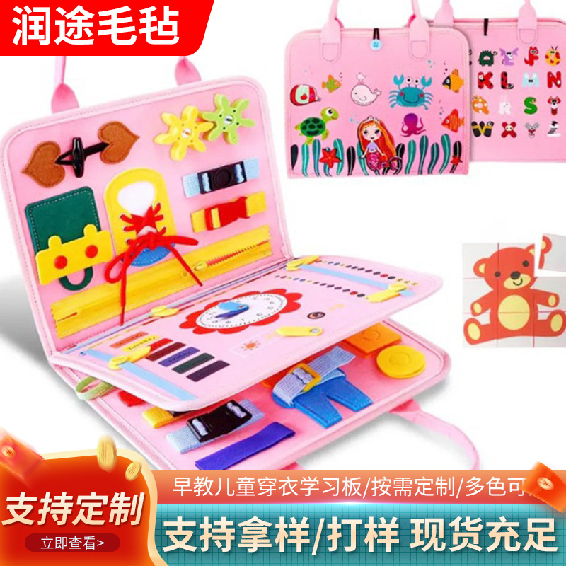 外贸跨境毛毡学习板蒙氏主题早教板益智穿衣训练忙碌板宝宝早教书