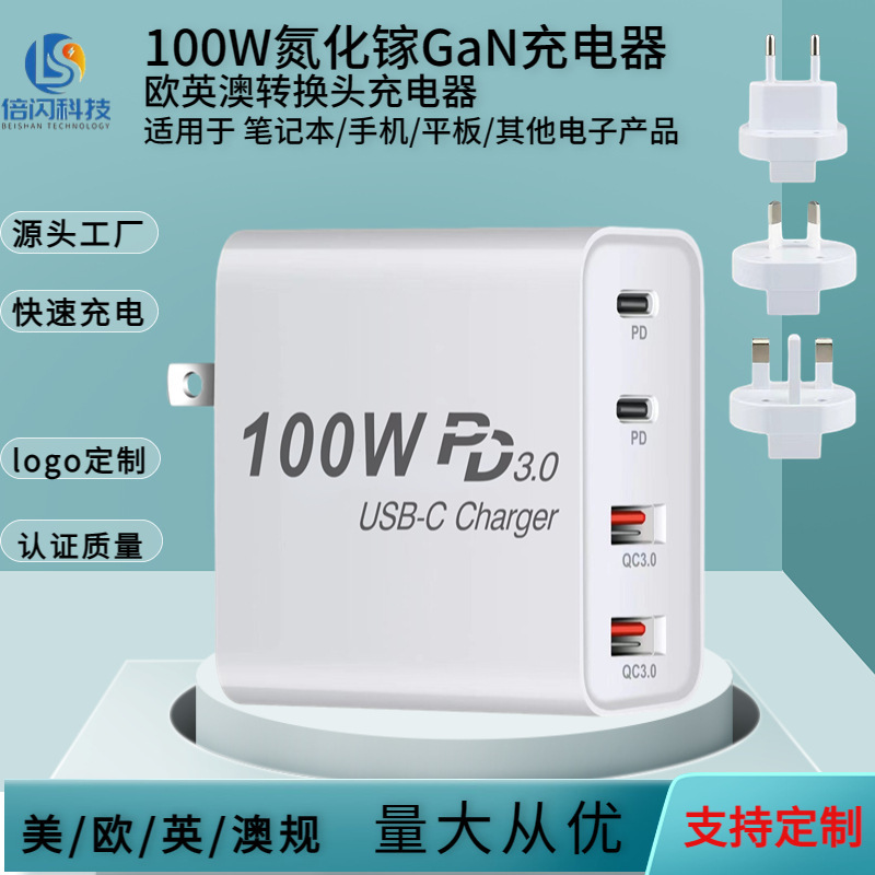 氮化镓100W充电器 pd100W全兼容快充适配器pd30W+qc3.0手机快充头