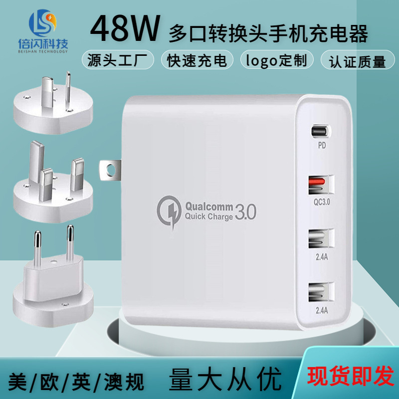 pd充电器 48W高通协议4USB快充充电头 48W四口pd+qc3.0手机适配器