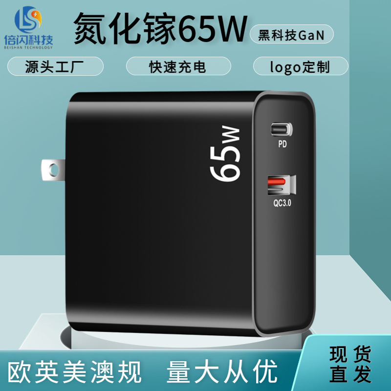 GaN氮化镓充电器 pd+qc3.0双口手机充电头 65W折叠脚快充适配器
