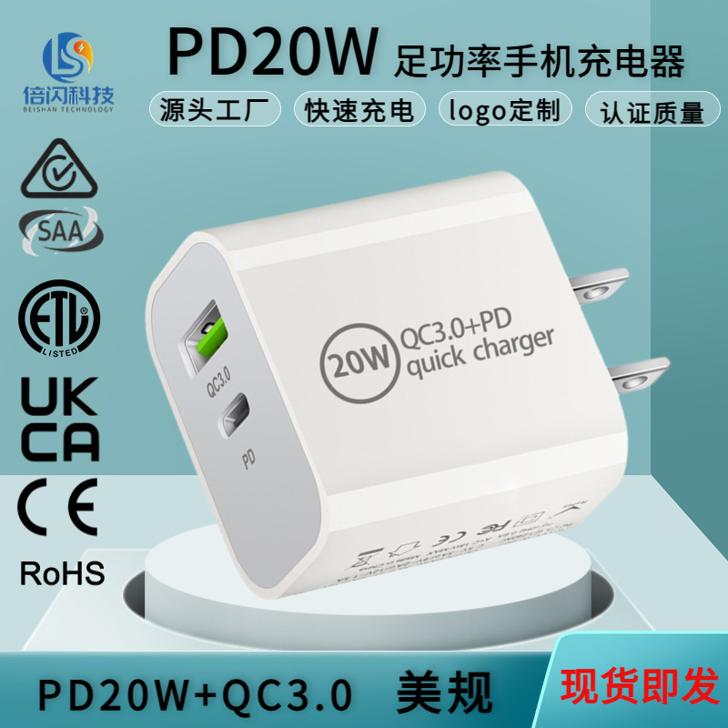 pd快充充电器 20W欧美规A+C充电头 SAA认证澳规type-c充电器工厂