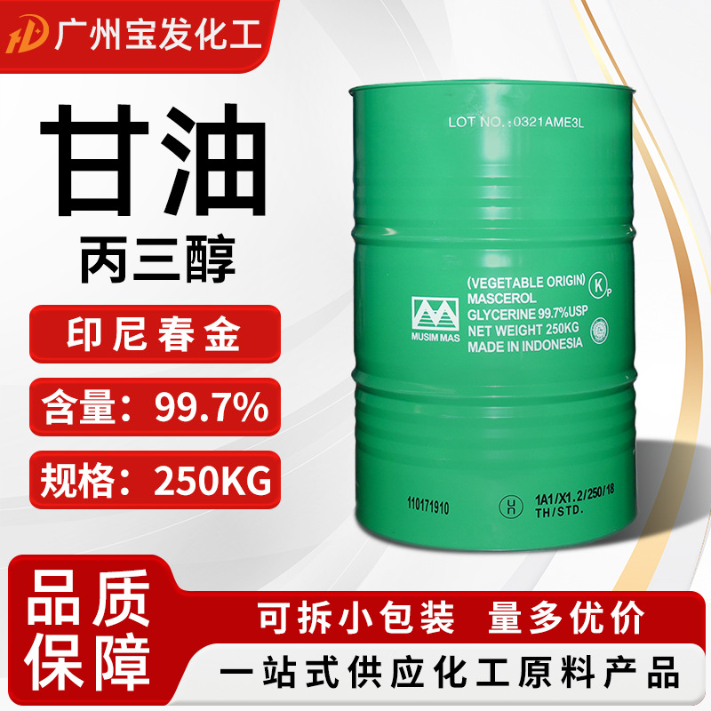 供应印尼春金绿宝甘油 马来大自然椰树丙三醇 工业级含量99.7%