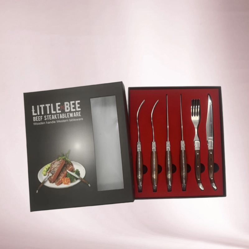 跨境热销不锈钢家用刀具套装新款电镀头翻盖盒木纹六件套锋利刀具