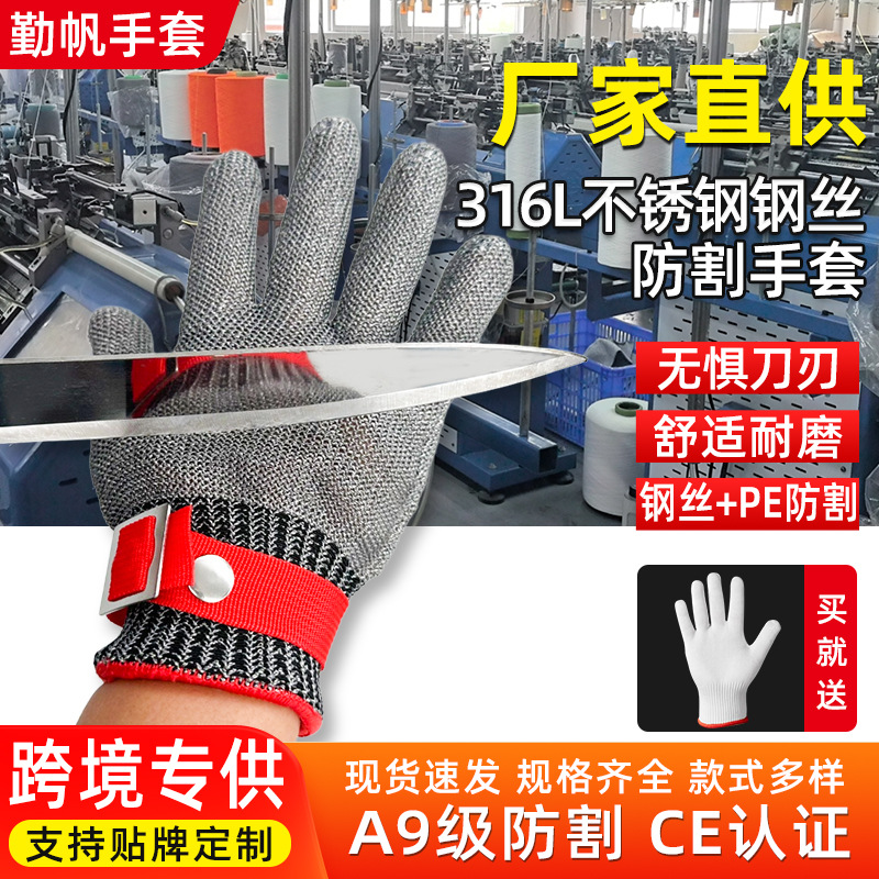 316纯钢丝防割手套屠宰杀鱼A9级防割防划伤手套手部防护劳保手套