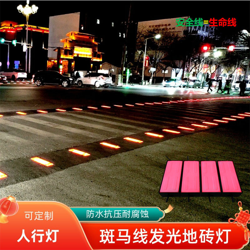 人行横道发光灯智慧斑马线地砖灯斑马线减速警示灯人行道指示道钉