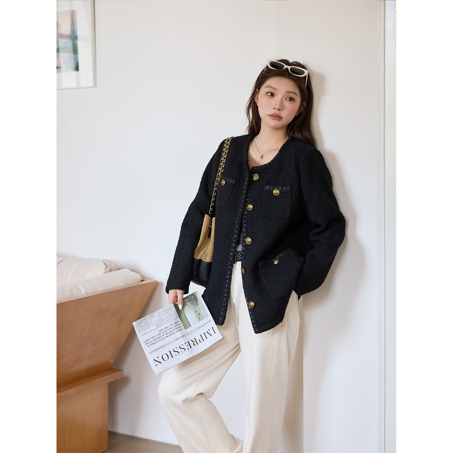 大码女装经典小香风夹克外套韩版休闲时尚气质英伦宽松粗花呢上衣