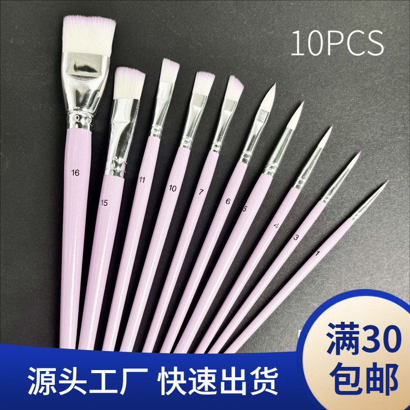 10件套木柄尼龙毛画笔套装适用于油画水彩画多功能艺术套件 疯抢