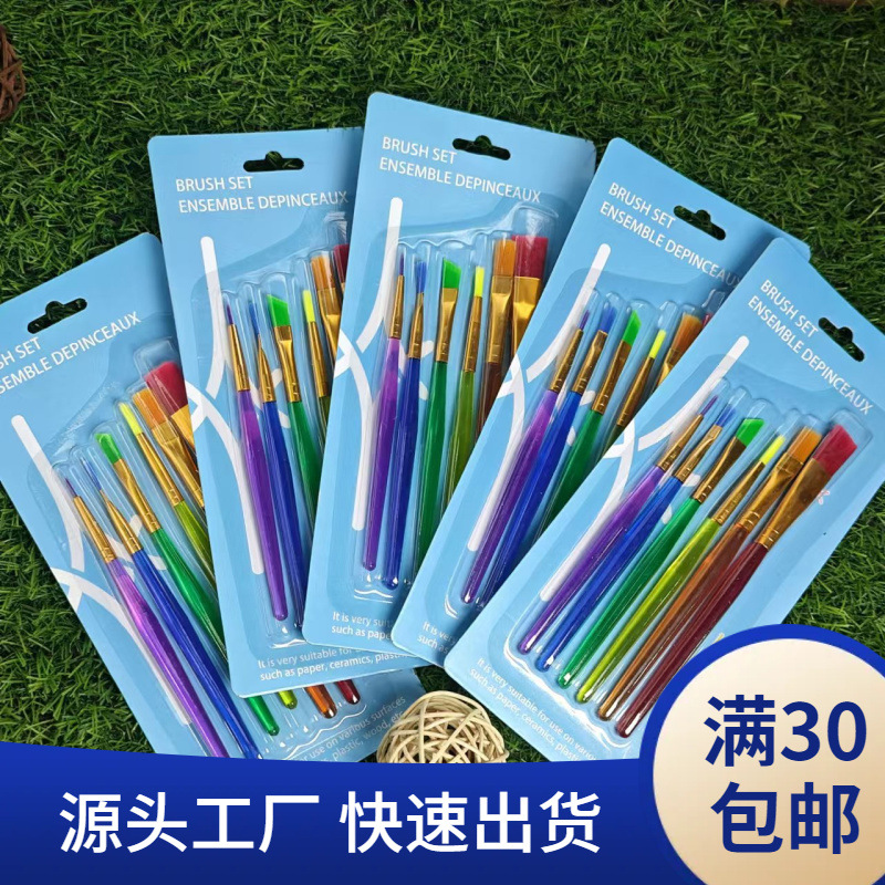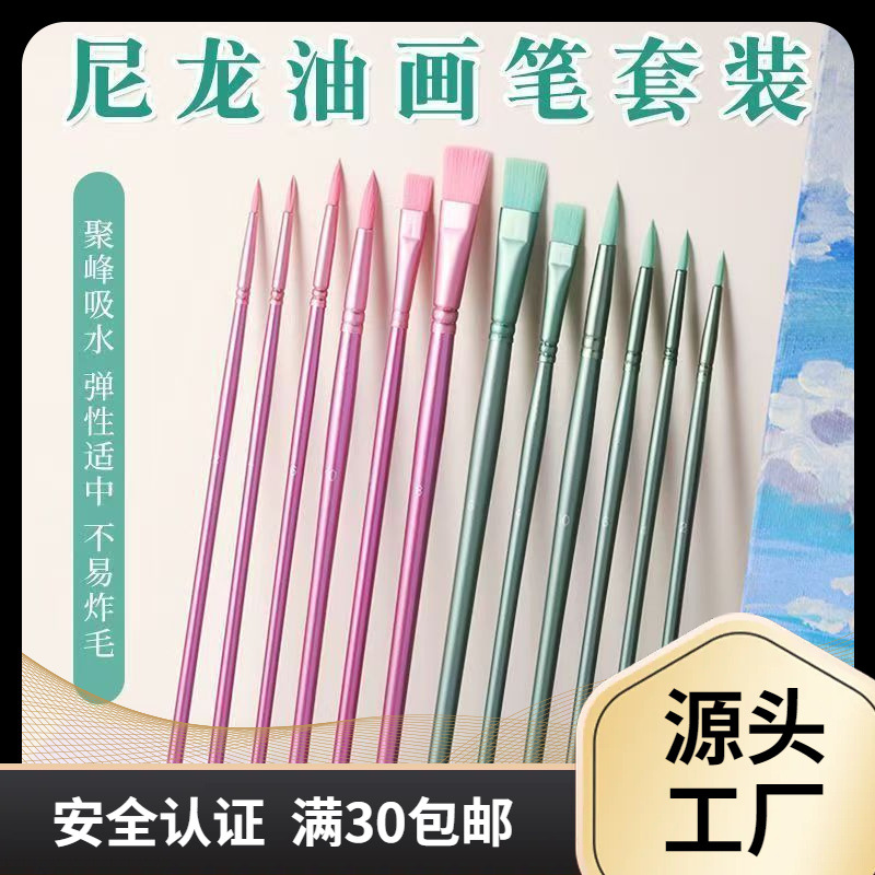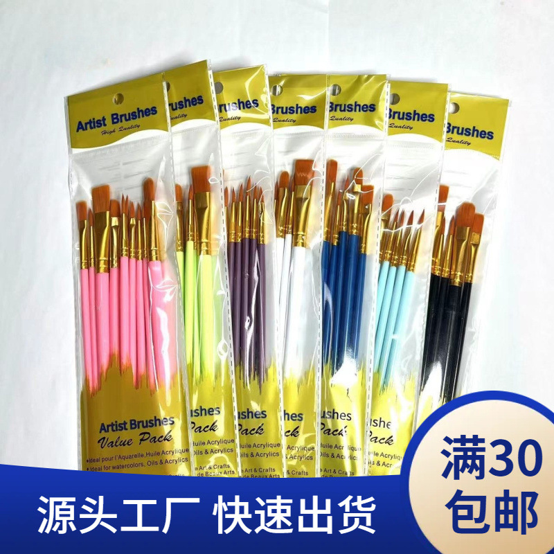 十支装尼龙毛塑料杆油画笔套装美术绘画优选工具艺术专用