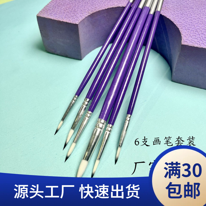 美术专用丙烯马克笔水粉水彩两用刷6支银尾木杆绘画工具套装热卖