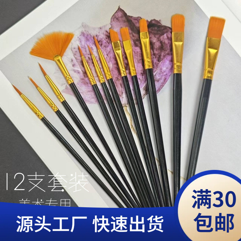 新款丙烯油画笔珠光黑12支套装初学者必备厂家直销
