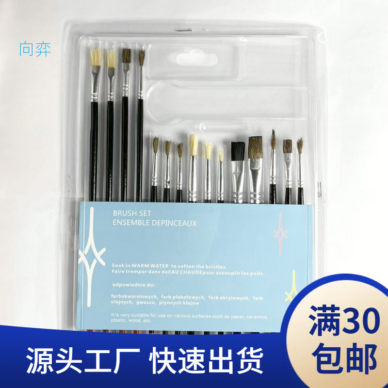 跨境15支猪鬃马毛木杆丙烯水粉水彩油画笔套装美术用品