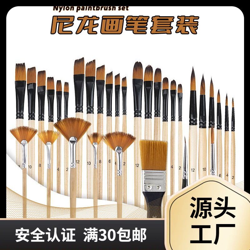 美术生专用水粉油画笔尼龙毛刷套装木柄绘画工具耐用画笔刷 爆款