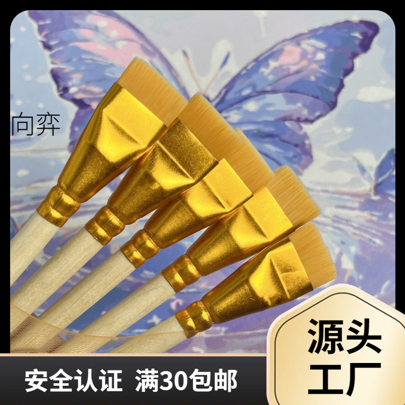 向弈跨境蓝色油画笔大平头尼龙毛木杆油画笔大笔刷大排刷厂家直销