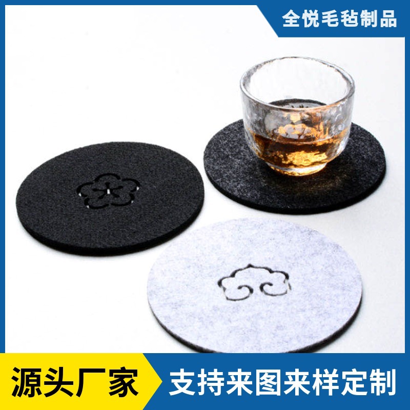 毛毡杯垫餐垫简约镂空素色圆形杯垫隔热吸水耐脏批发跨境羊毛毡