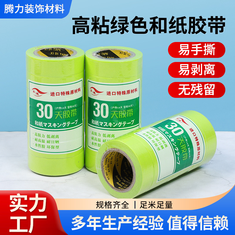 厂家直供和纸胶带高粘绿色美术喷漆遮挡美缝易撕彩色美纹纸